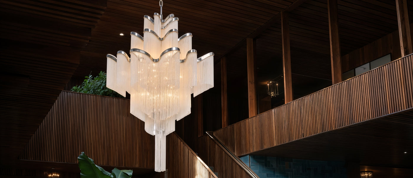 • For double-height or vaulted ceilings, consider multi-tiered chandeliers. These are designed to draw the eye upward and fill the vertical space effectively, making the chandelier a central feature of the staircase area.