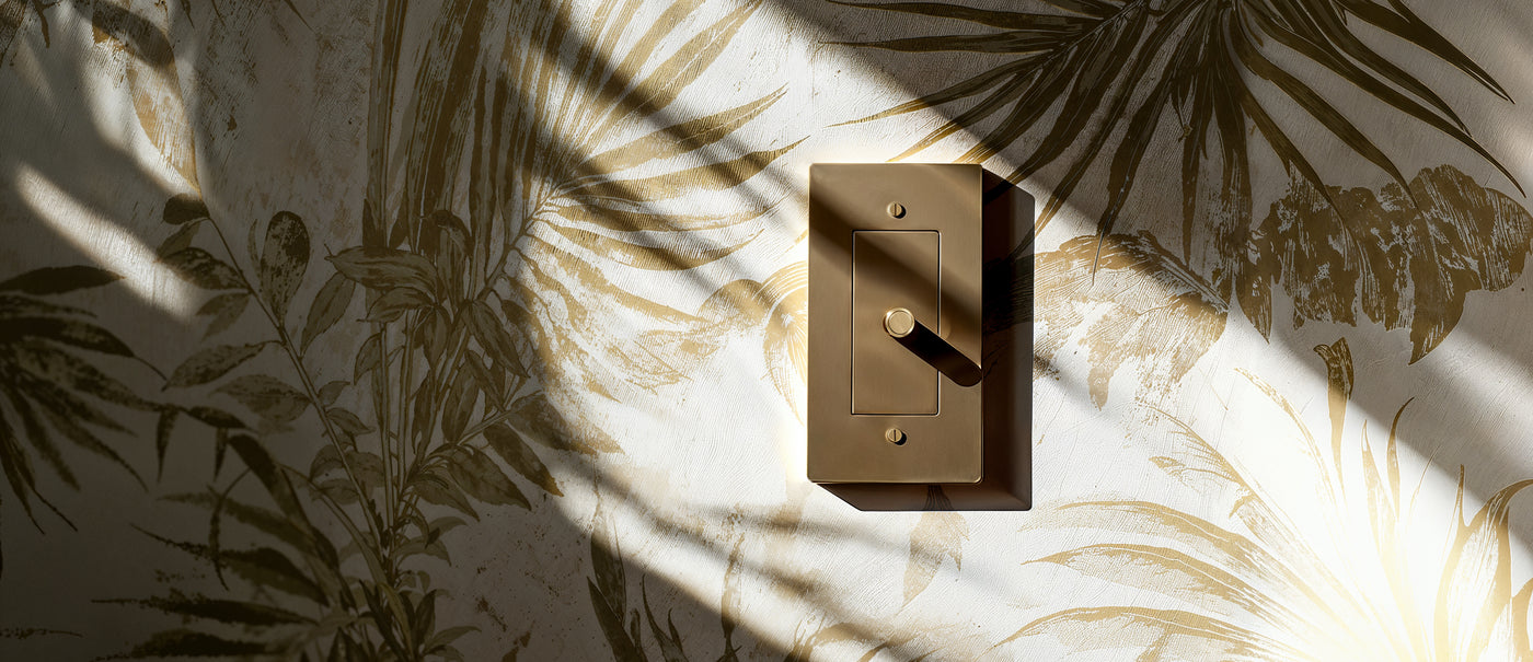 Vintage brass switches serve as a special element, creating a unique character that only a warm golden luster and handmade, artisan craftsmanship can offer. This combines classic toggle mechanisms with the finest solid brass, creating distinctive focal points that elevate ordinary walls.