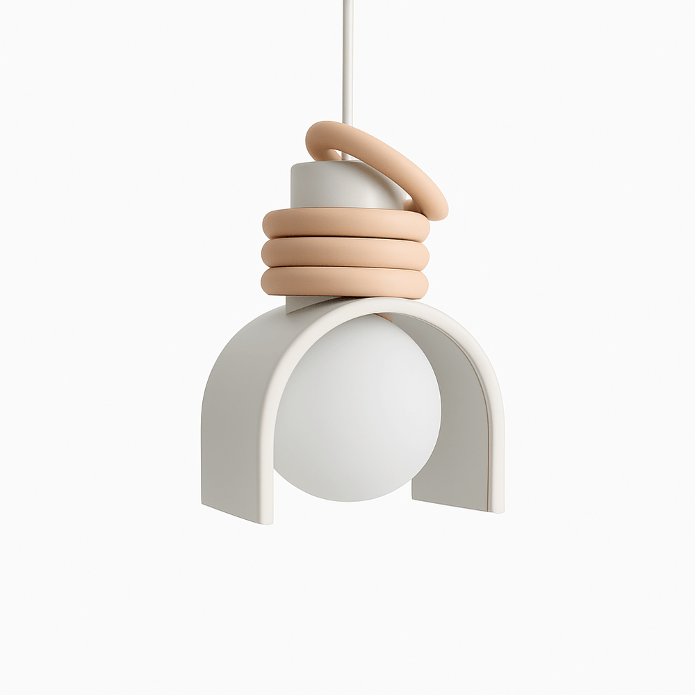 The Aeneus Pendant Light is a modern resin light fixture featuring a dome-shaped shade that partially encases a glowing orb for soft, diffused illumination. Stacked, curved resin accents at the top add texture and depth to its minimalist design. Ideal for dining areas, living rooms, and bedside installations, this pendant light enhances contemporary and eclectic interiors. Its bold silhouette makes it a striking focal point, blending function and artistry in lighting design.