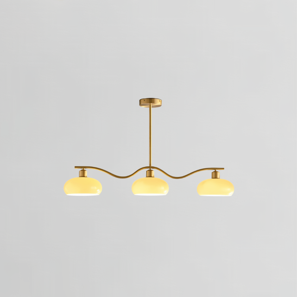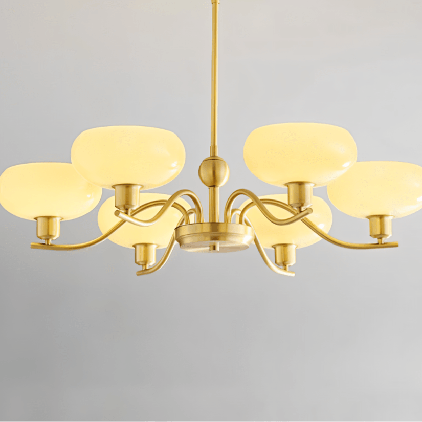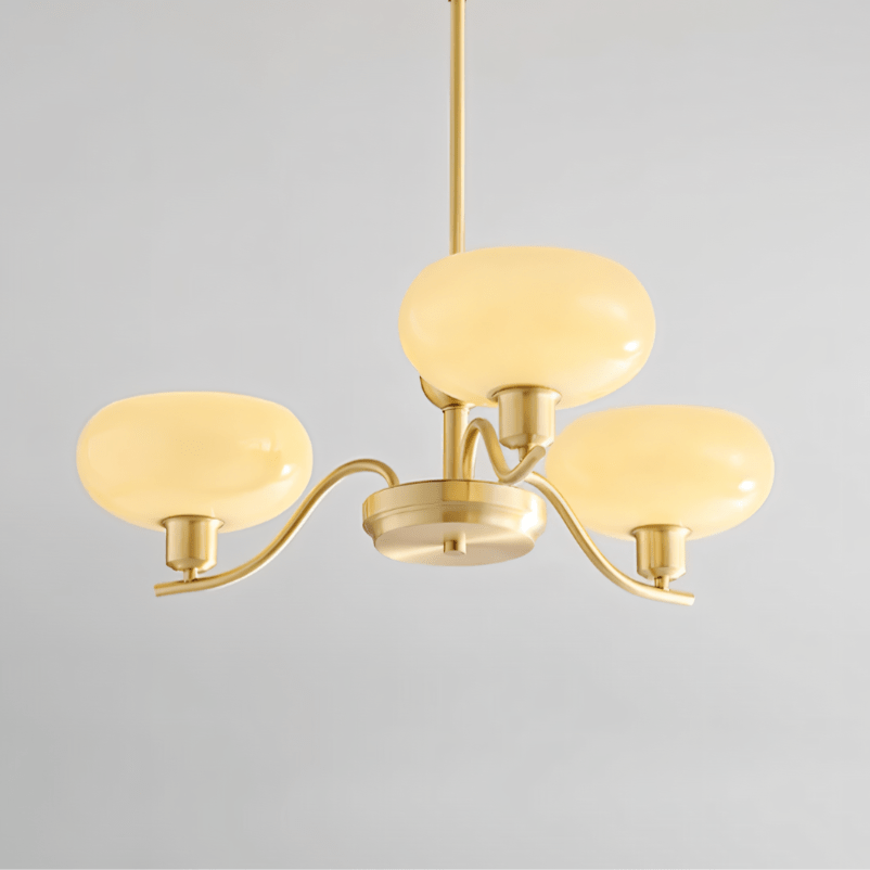 Crafted from premium copper with elegant glass lampshades, the Ampix Chandelier blends smooth curvature with a warm golden finish for a refined, modern silhouette. The gently upturned arms and opal-toned diffusers emit a soft, ambient glow, ideal for dining rooms, living areas, or entryways. Its suspended form adds vertical drama without overwhelming space. The fixture’s minimalist yet fluid structure ensures visual balance and timeless appeal.