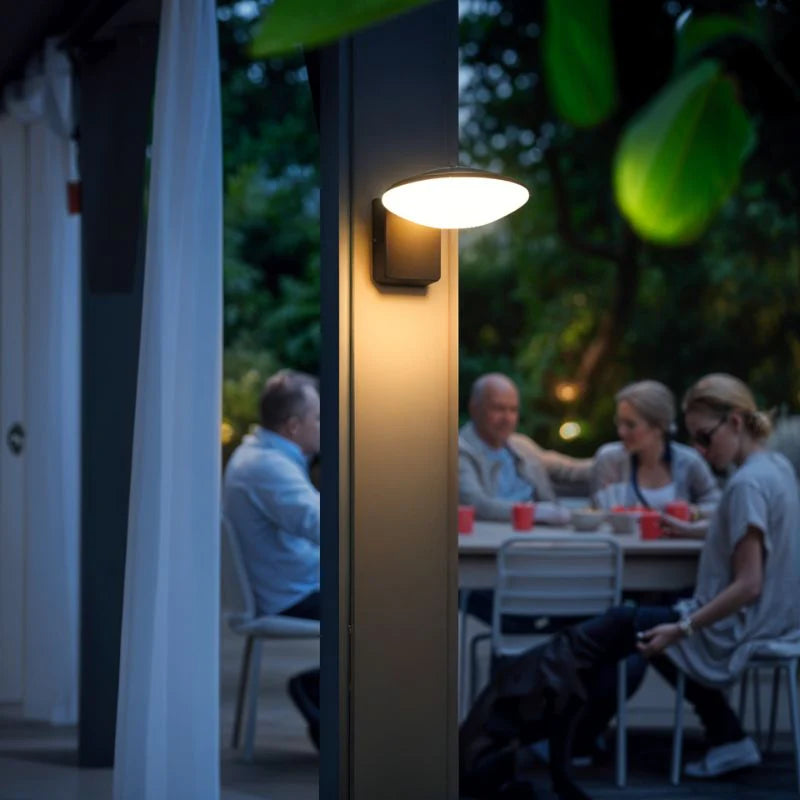 The Aruj Outdoor Wall Lamp features a sleek and minimalist design with a circular shade, providing a soft and diffused glow. Crafted from durable aluminum, this weather-resistant light fixture is perfect for illuminating outdoor spaces such as patios, porches, and walkways, creating a warm and welcoming ambiance.