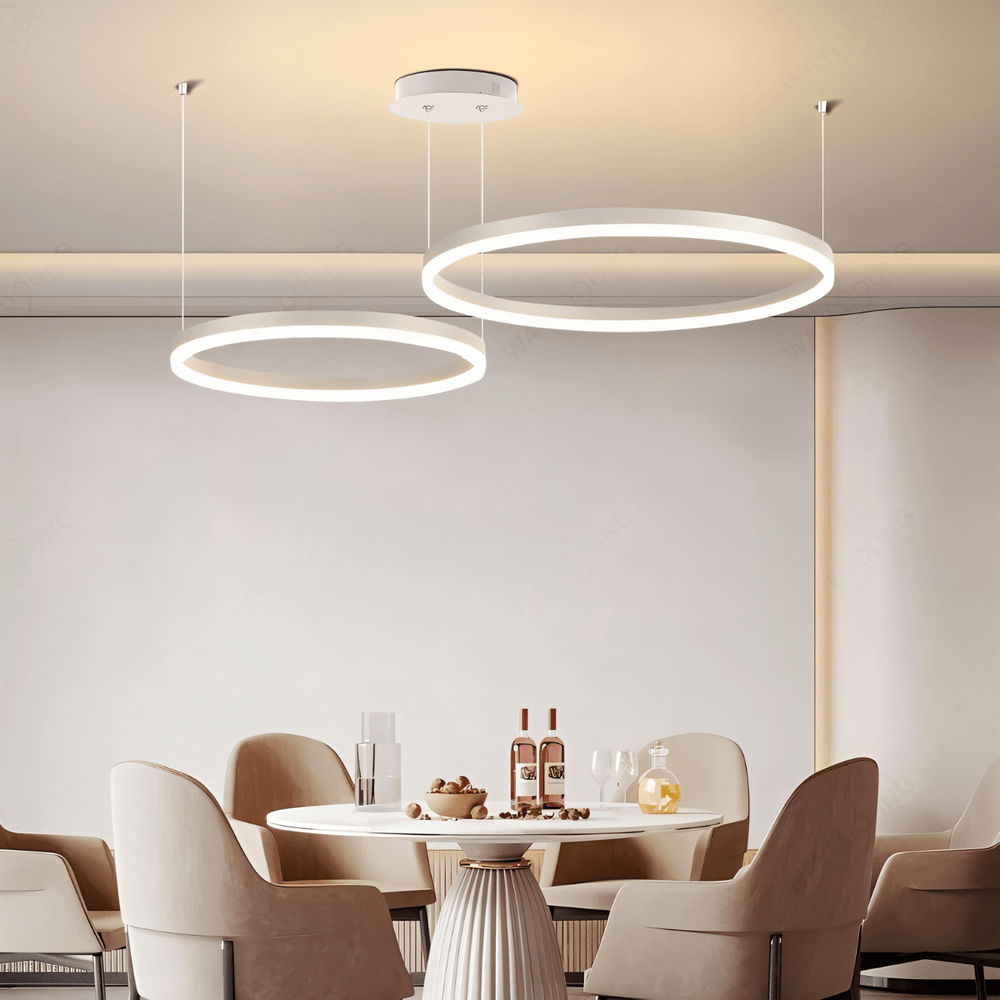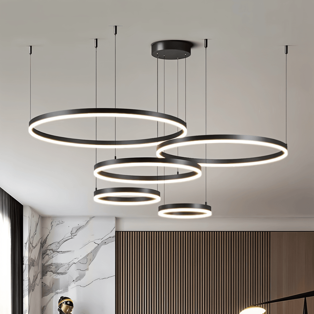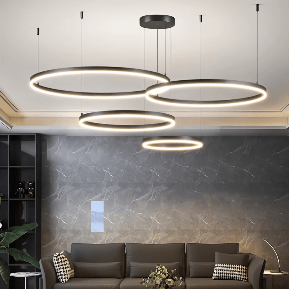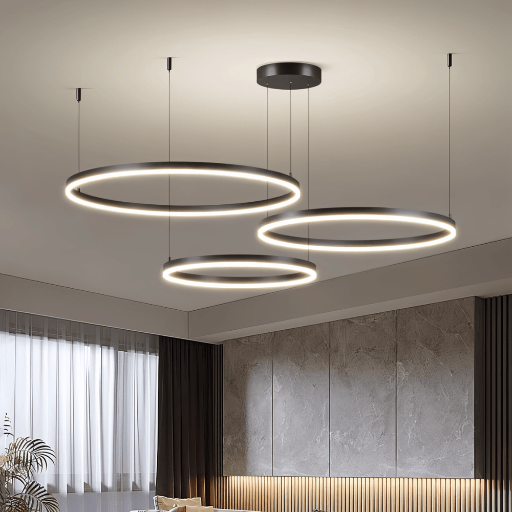 The Aryana Chandelier offers an opulent and modern visual experience. Crafted with precision, this stunning chandelier features rings made from premium iron with LED illumination, emanating a cutting-edge ambiance. Its polished black, white, and gold finishes add a touch of modern luxury. Whether adorning your living room, dining room, or office, the Aryana effortlessly sets itself apart, bestowing a distinctive designer touch that leaves a lasting impression.