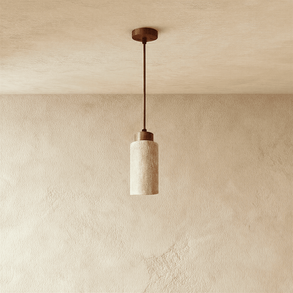Travertine pendant offers warm, diffused light and organic texture — perfect for cozy living spaces and blending with neutral or wood interiors.
