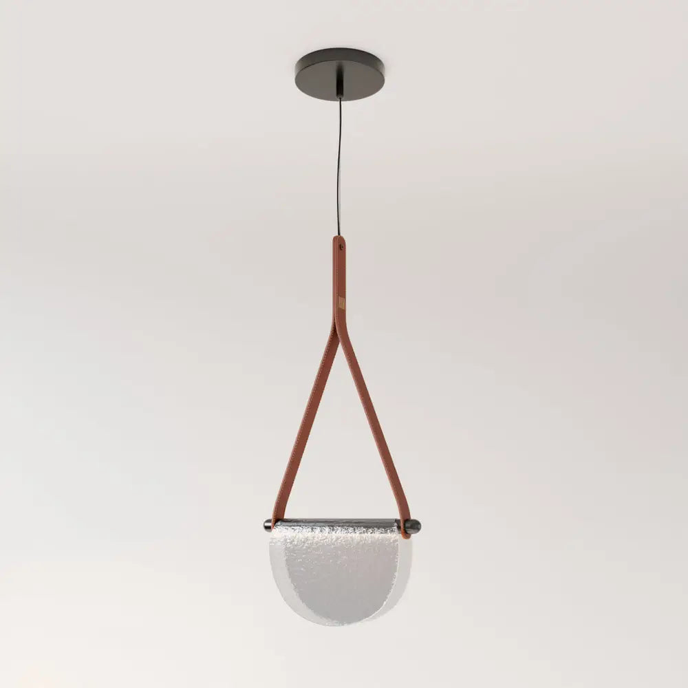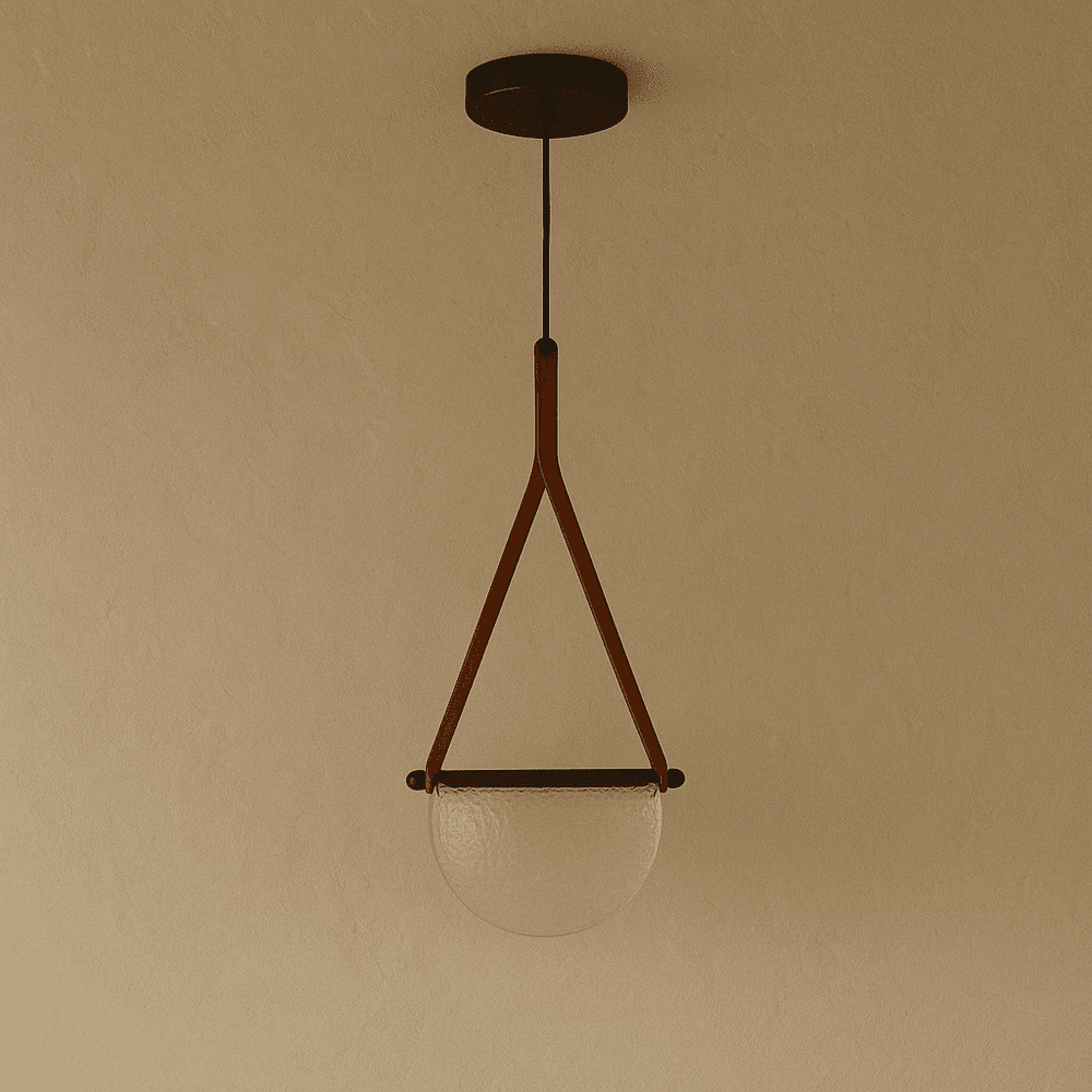The Avgi Leather Pendant Light creates a romantic atmosphere through its handmade design, featuring a unique transparent glass shade and a high-quality metal base, suspended by an elegant leather strap. This combination emits a soft, gentle light that enhances the ambiance, making it perfect for bedrooms, model rooms, or restaurants. Its minimalist aesthetic and fine craftsmanship ensure a cozy, intimate setting that transforms any space into a warm, inviting retreat.