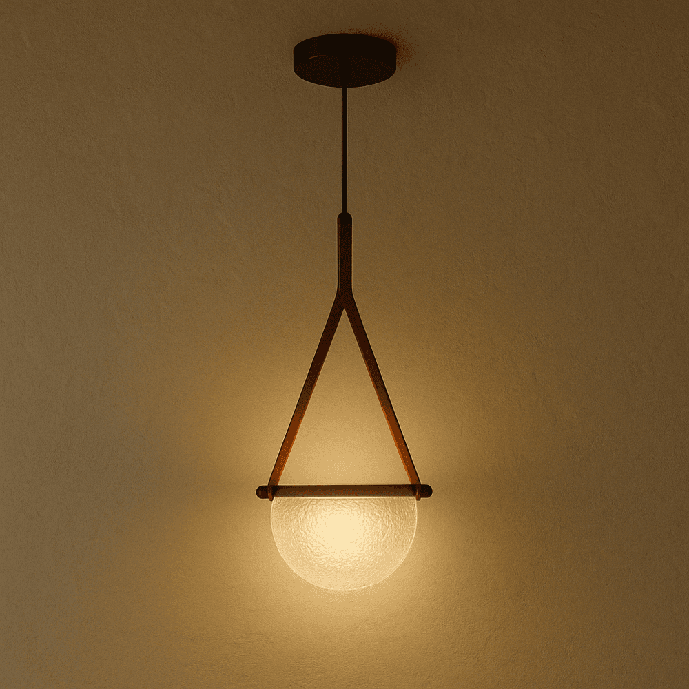 This Handmade Avgi Pendant Light is crafted with a unique transparent glass shade and high-quality metal base. It hangs with a leather strap emitting soft, gentle light, it adds elegance and creates a cozy, romantic ambiance in bedrooms, model rooms, or restaurants.