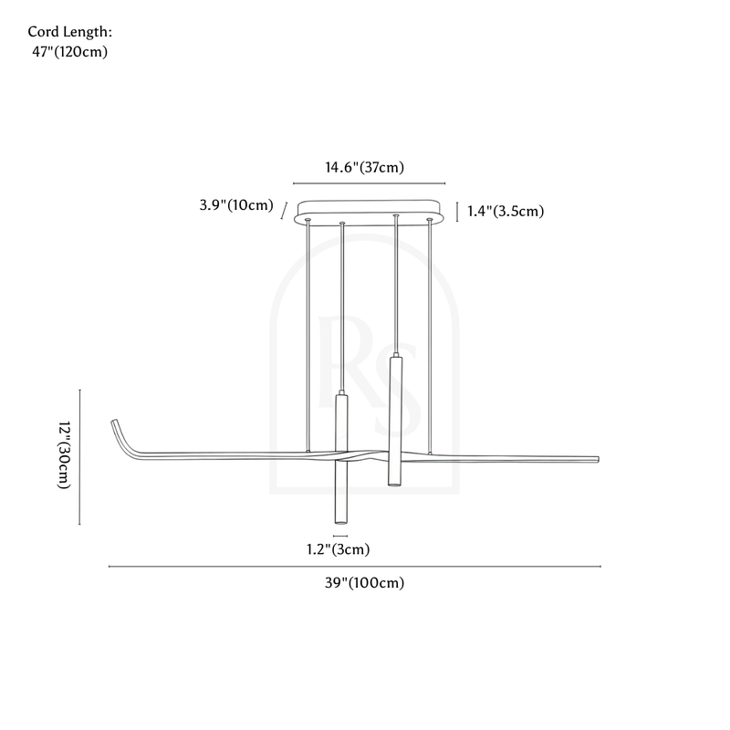 Weight: 5.5lbs (2.5kg) Material: Metal, Acrylic Finish: Black, White Light Source: Integrated LED Dimmable: Yes (Optional) Voltage: 90-260VAC Installation Type: Hardwired Chain/Cord Length: Up to 3.9ft (1.2 meter) Adjustable Cord: Yes Canopy/Backplate Dimensions: L15.7"(40cm) x W4"(10cm) x H1.4"(3.5cm) Sloped Ceiling Compatible?: Upon Request Certifications: UL, CCC, CE, CQC, EMC, FCC, GS, LVD, PSE, ROHS, SAA, and VDE