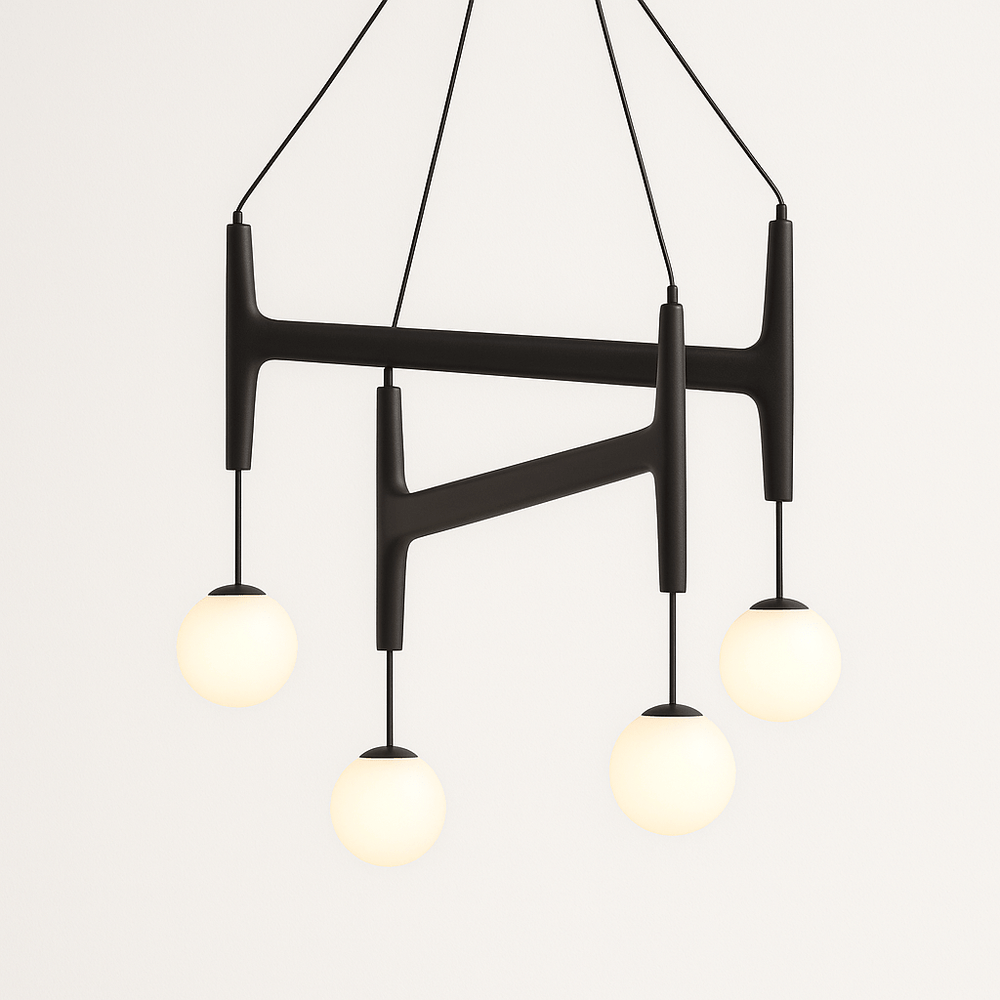 Lacquered black walnut chandelier provides a soft, diffused glow — perfect for enhancing modern kitchens, dining rooms, or office spaces with timeless elegance.