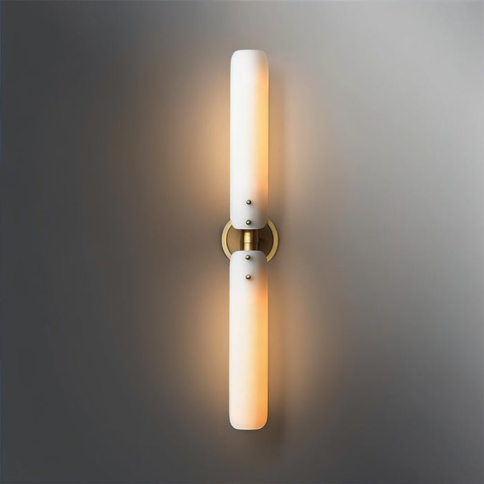 The Calafi wall lamp is a sculptural light fixture crafted from premium copper and glass, designed to elevate modern interiors. Its symmetrical dual-glass shades create a soft, diffused glow, while the warm-toned copper arm and round wall mount provide structural elegance. The vertical design and minimalist silhouette add visual height, making it ideal for hallways, bedrooms, or living spaces. This wall lamp blends artistic form with function, enhancing both ambient lighting and décor aesthetics. Perfect for accentuating walls with a refined yet contemporary touch, it’s a statement light fixture for sophisticated environments.