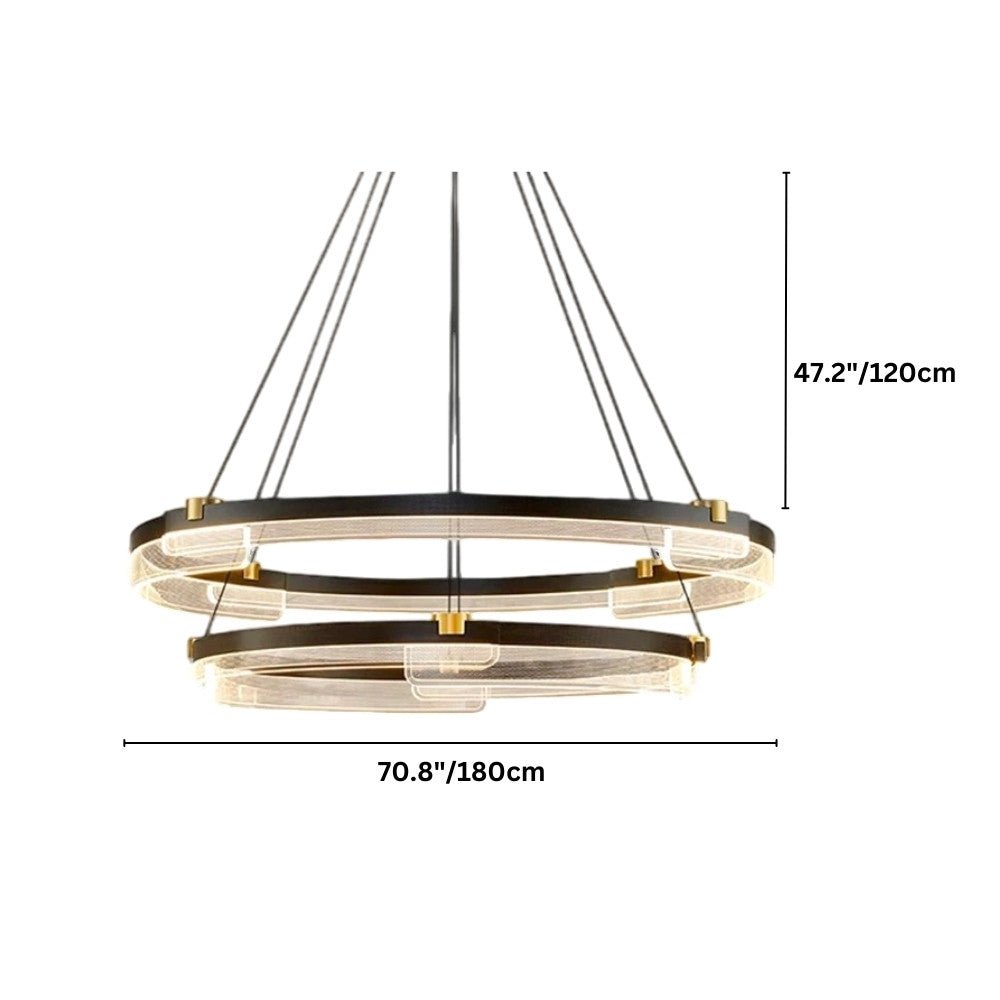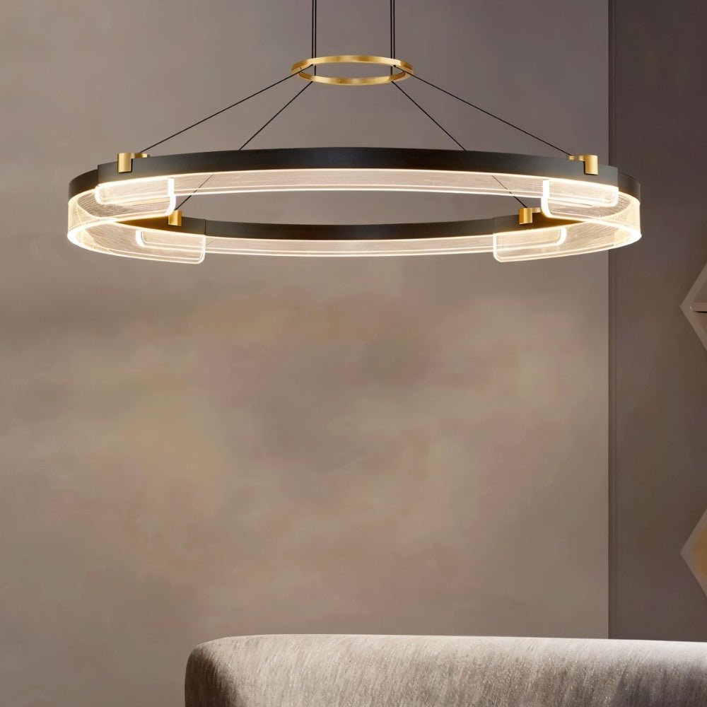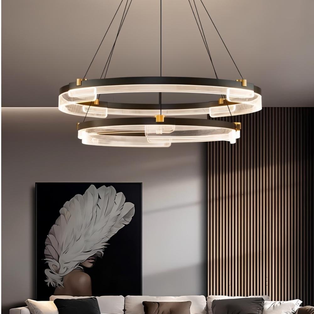 The Calpi Chandelier features a sleek, dual-ring light fixture with integrated acrylic diffusers, perfect for modern and luxury interiors.