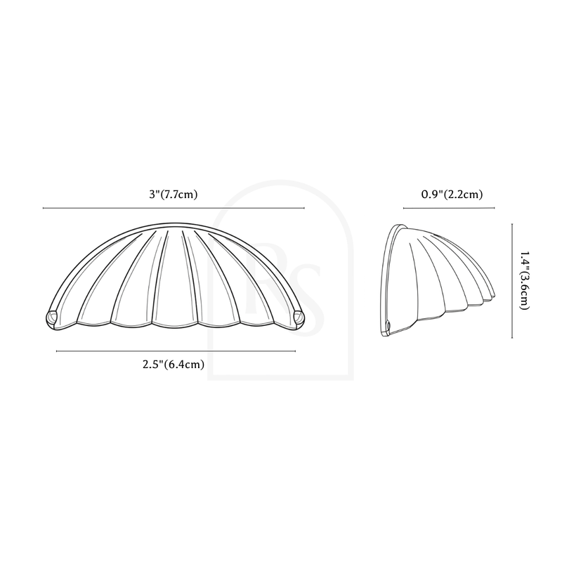 The Celo Drawer Pull features a sculpted half-moon profile with deep fluted ridges, creating a bold, shell-inspired silhouette. Crafted from zinc alloy, it is finished in a dark antiqued bronze tone that enhances the contours and adds dimensional depth. Its symmetrical arched form offers a secure grip while doubling as a decorative focal point. Ideal for drawers and cabinet fronts, this pull brings a classic yet distinctive accent to furniture that highlights texture, detail, and character.