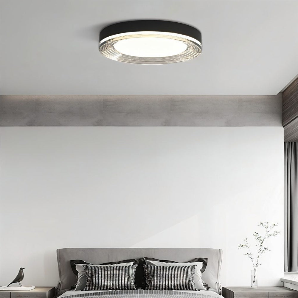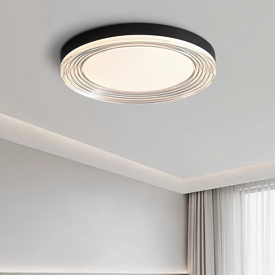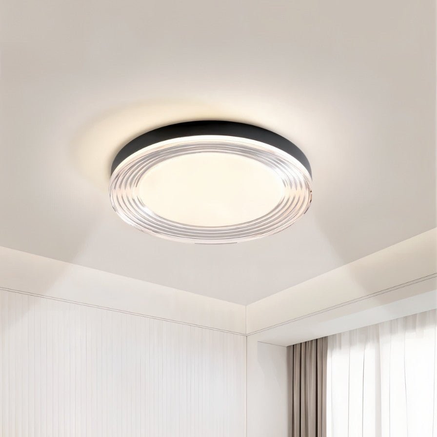 The Civra Ceiling Light is a modern round light fixture made from iron and acrylic, featuring a sleek black frame with layered acrylic rings that create a refined ripple effect around the luminous center. Its minimalist design delivers uniform, diffused illumination that enhances contemporary interiors. With a flush-mount structure, this ceiling light is perfect for bedrooms, living rooms, dining areas, and hallways, offering both style and practicality for spaces with lower ceilings.