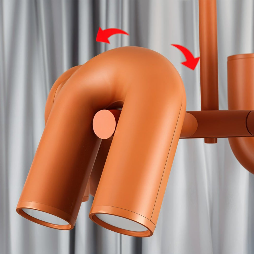 Adjustable U-shaped modules in a vibrant finish offer customizable illumination and a playful touch — perfect for modern living rooms or creative spaces.