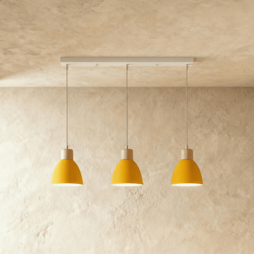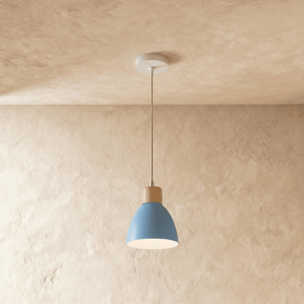The Colorato Pendant Light features a powder-coated aluminum shade with wood accents, offering a simple yet impactful design. Available in various colors and styles, it creates the perfect ambiance in any space. Ideal for dining rooms, kitchens, entryways, and restaurants, its versatile design complements various interior themes. The lamp casts a warm, inviting glow, enhancing the harmony of your surroundings.