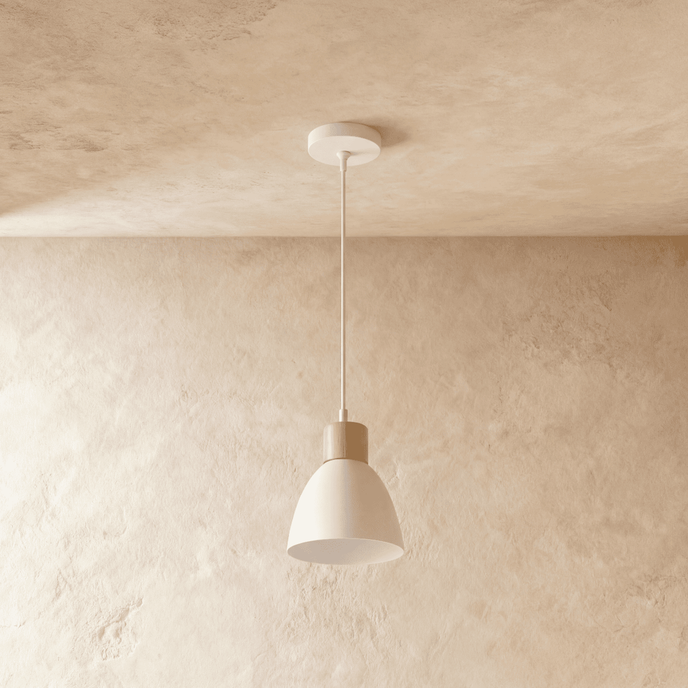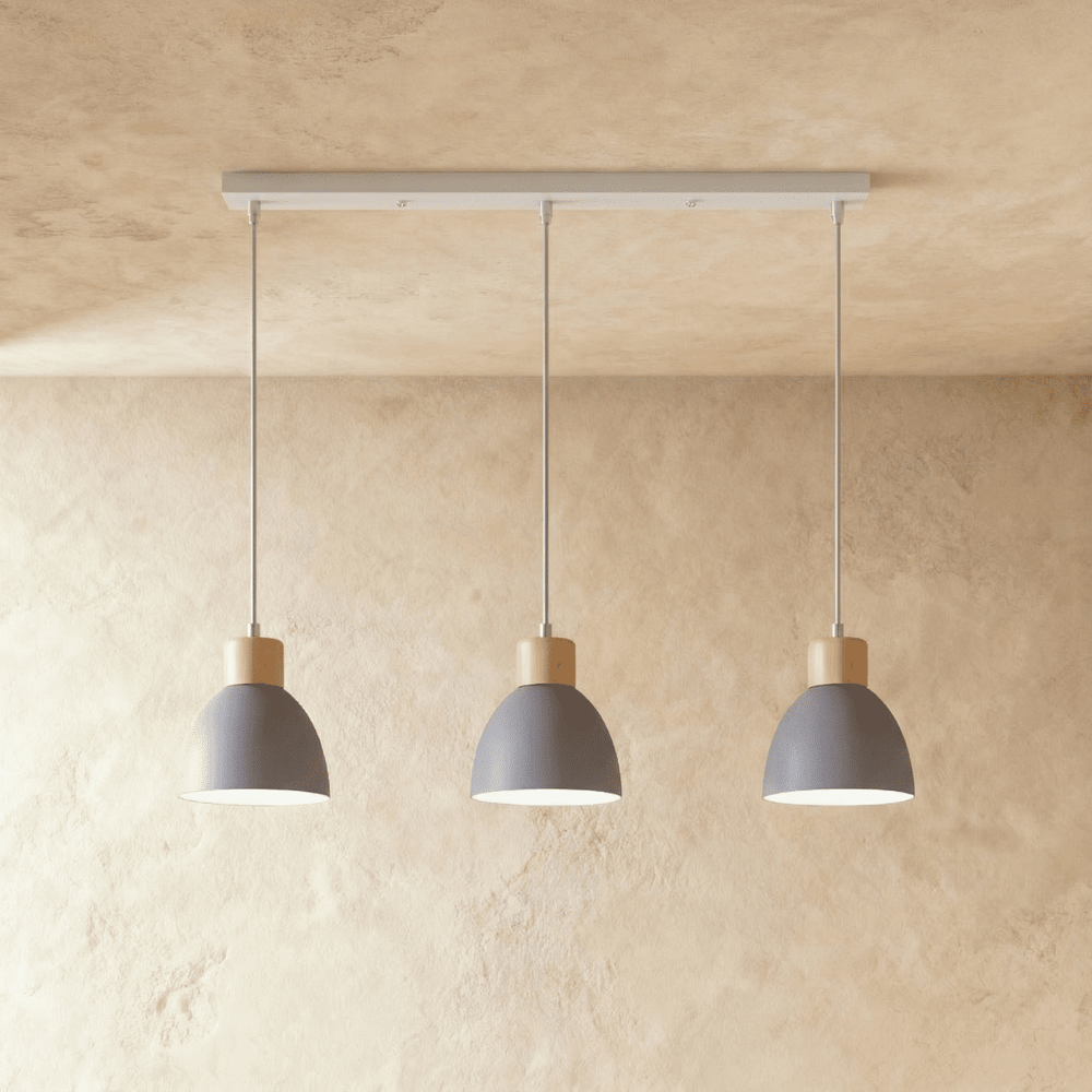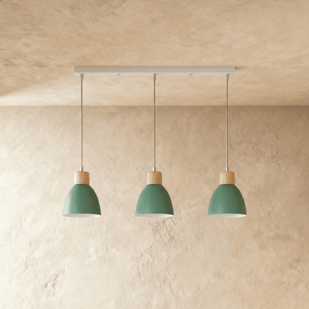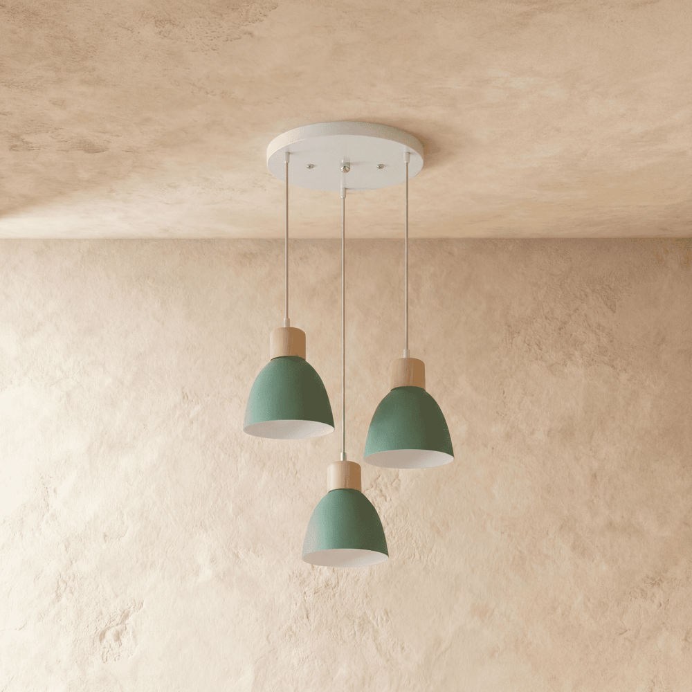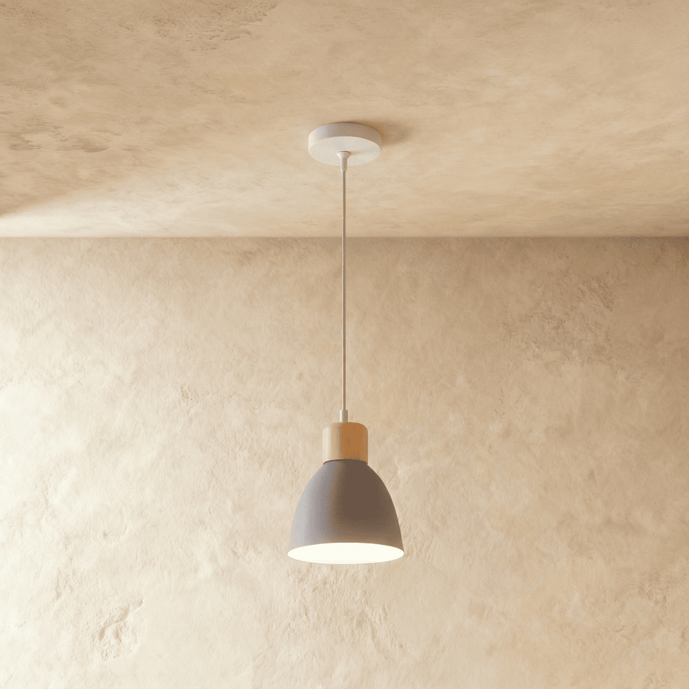 The Colorato Pendant Light is crafted from high-quality powder-coated aluminum and features natural wood accents, combining durability with a touch of organic elegance.