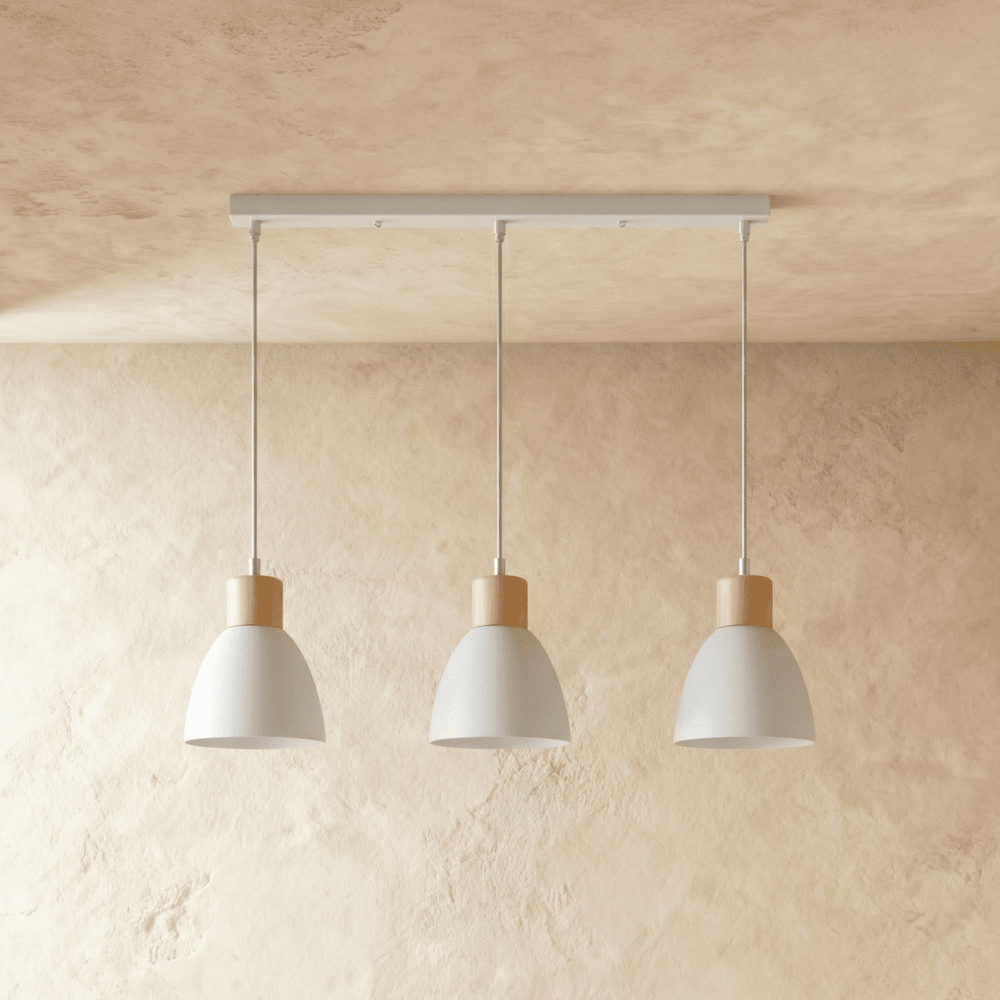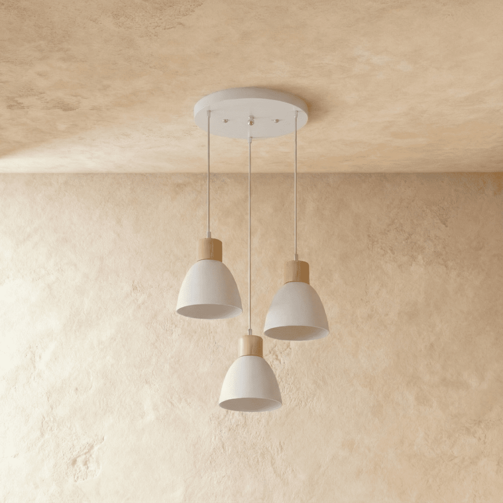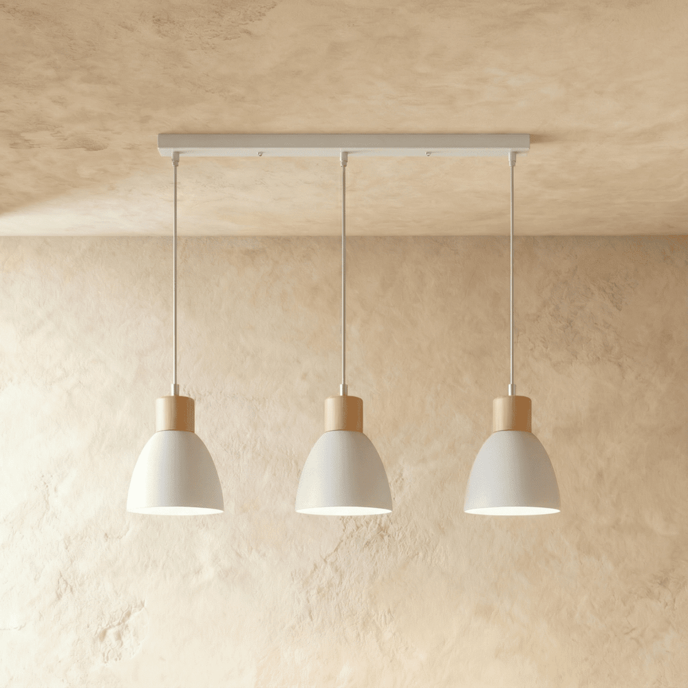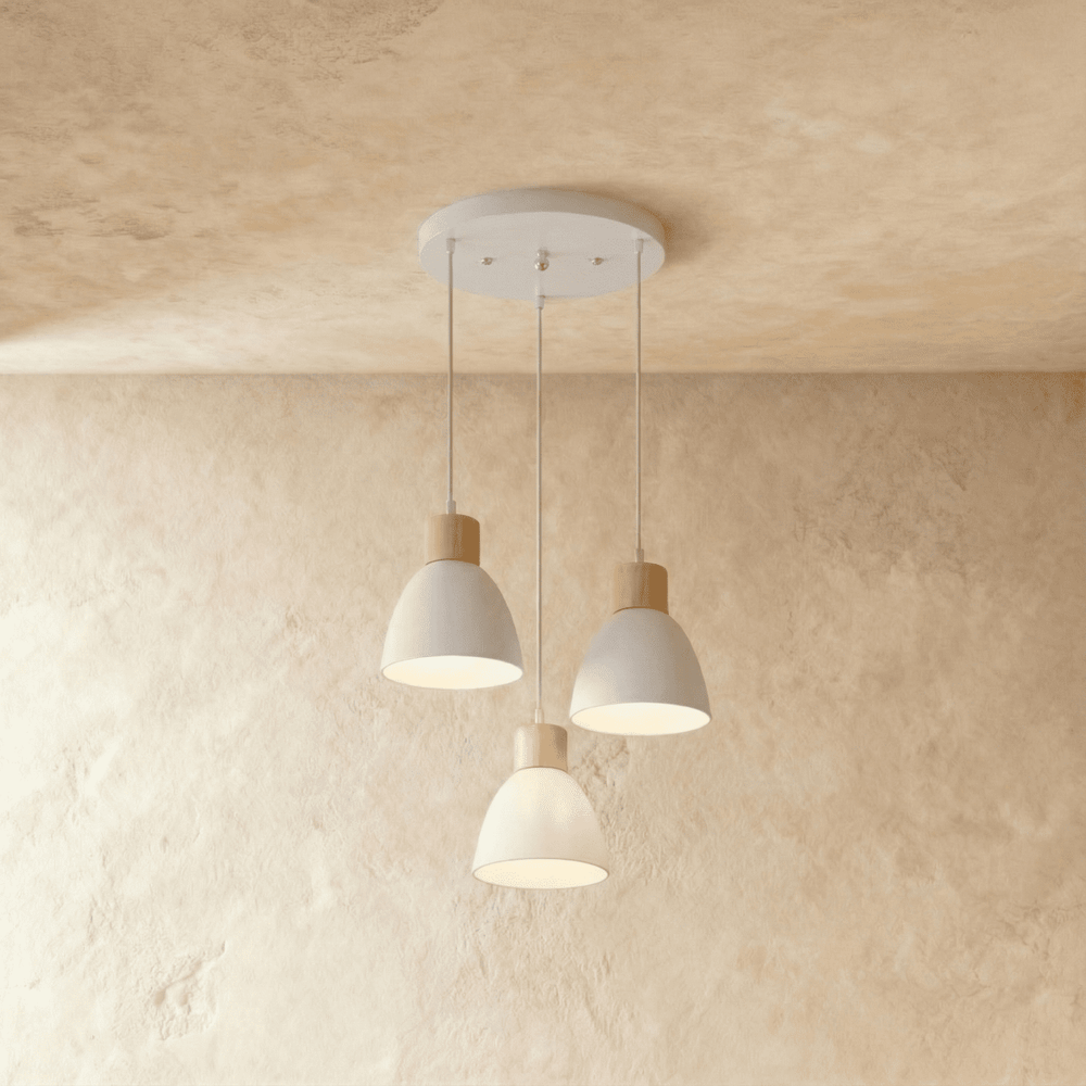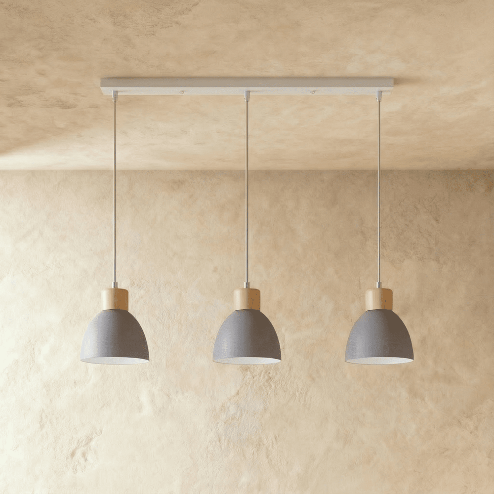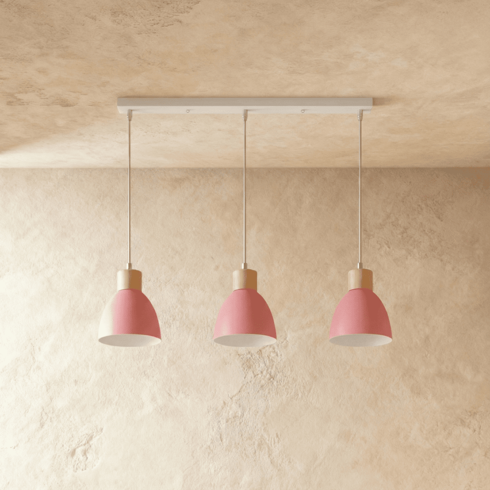 The Colorato Pendant Light is crafted from high-quality powder-coated aluminum and features natural wood accents, combining durability with a touch of organic elegance.