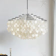 The Cornelia Chandelier is meticulously crafted using high-quality metal and adorned with delicate natural Capiz shells. This combination ensures both durability and sophistication, infusing any space with a pearlescent glow and a touch of bohemian elegance.