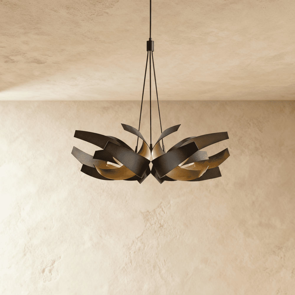 The Cressida Chandelier redefinies spaces with form and versatility. With its captivating sculptural design, crafted from gracefully curved forged metal, this chandelier not only makes a bold statement but also orchestrates a mesmerizing interplay between light and shadow. This striking pendant light is perfect for illuminating dining rooms, living rooms, and entryways, adding a touch of drama and elegance to any space.