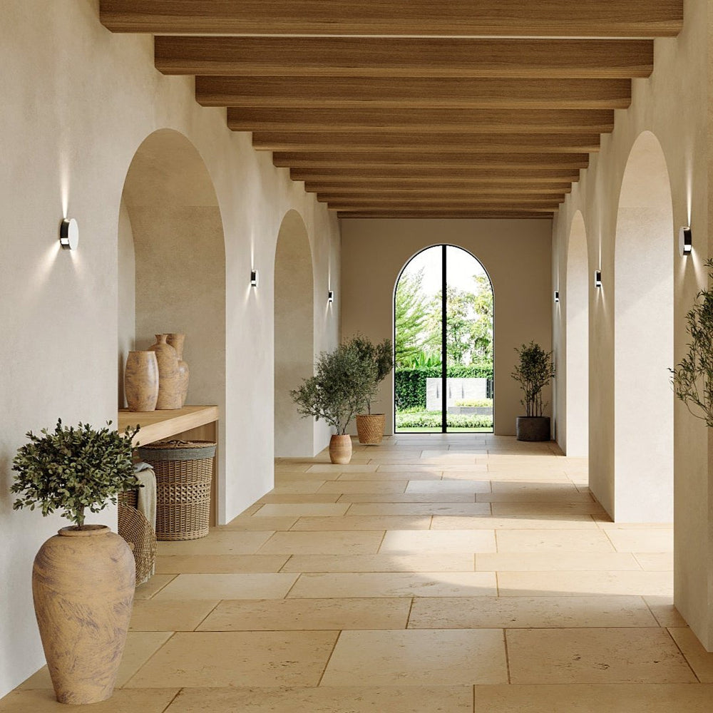 Yes, the Cross Star Wall Lamp is highly suitable for contemporary decor. Its sleek and modern design, characterized by a cylindrical body and elegant acrylic shade, complements contemporary aesthetics seamlessly. The lamp is crafted from durable aluminum, which not only ensures robustness and longevity but also adds a sophisticated touch to any modern space. Additionally, its design supports versatile wall mounting, which enhances its suitability for various contemporary settings, making it an excellent choice for those looking to add a touch of elegance and modernity to their interiors.