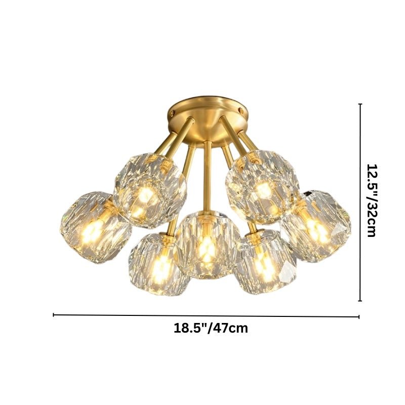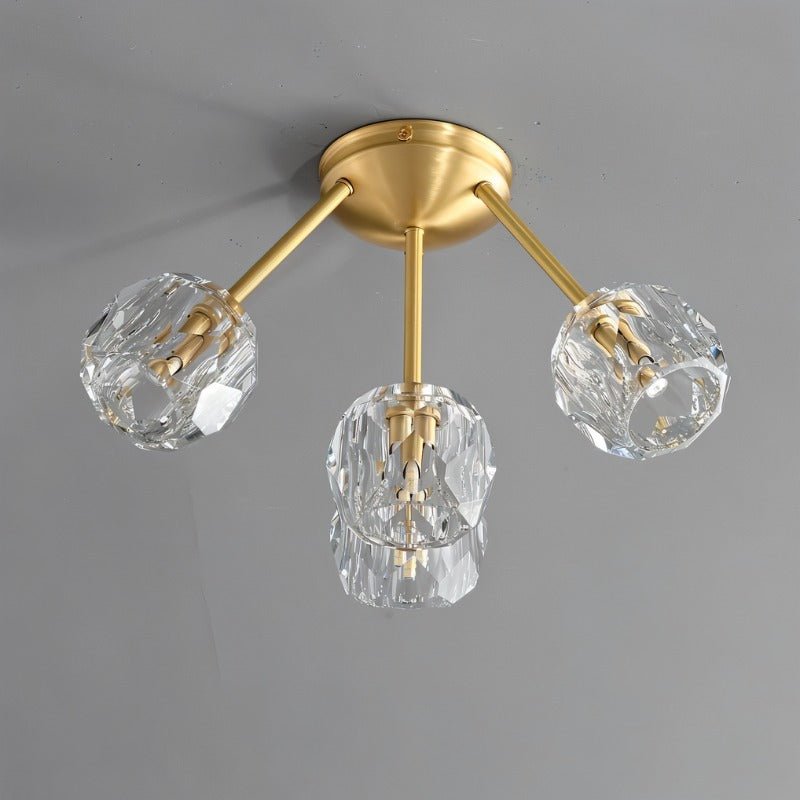 The Crylo Ceiling Light is a refined light fixture featuring a modern design with multiple crystal shades supported by brass or iron arms. Its crystal shades create an elegant, ambient glow, while the brass or iron finish adds a touch of luxury and durability. This ceiling light is ideal for living rooms, dining areas, bedrooms, and hallways, offering a stylish blend of modern aesthetics and timeless appeal.