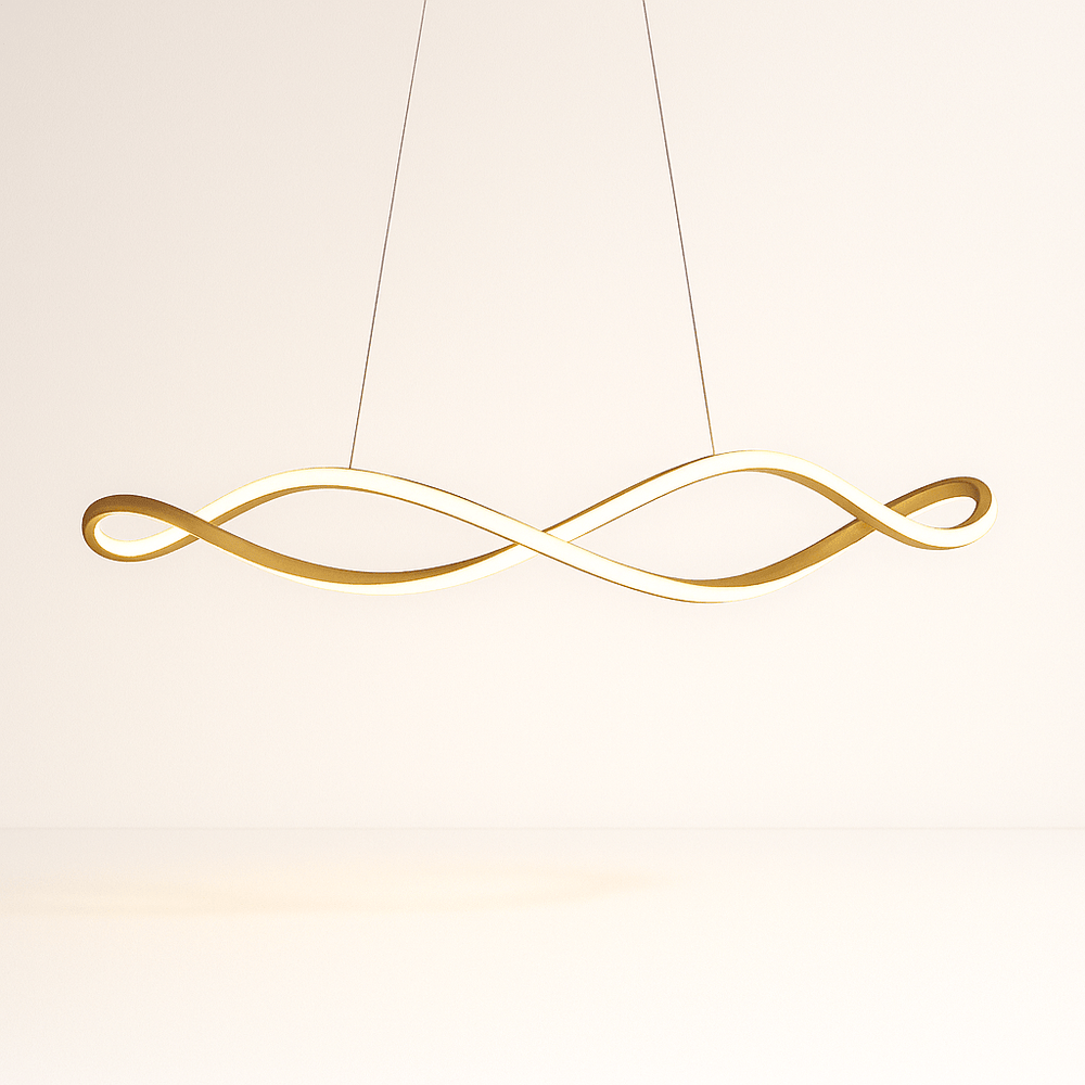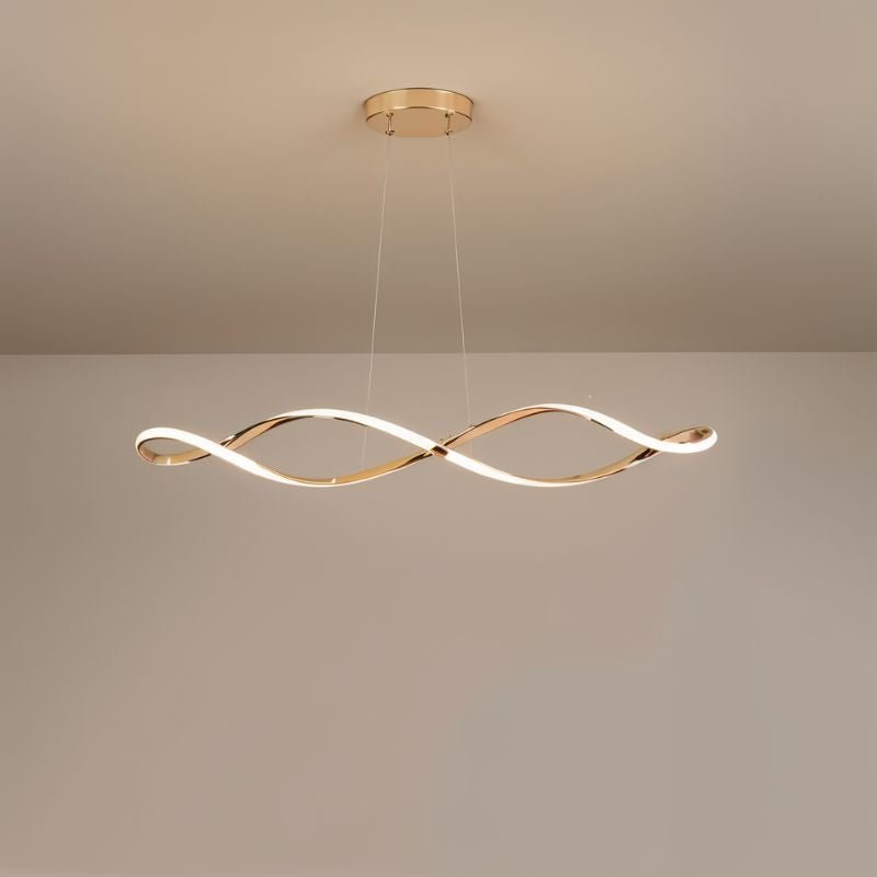 The Curlicue Chandelier would ideally accent any room. It comprises an aluminum and iron body with an acrylic diffuser and has a unique twisted design with an embedded LED module that illuminates through the form. The Curlicue is available in remote-controlled and Amazon Alexa-controlled versions, in polished chrome and gold finishes, giving your space an opulent sense that makes you enjoy walking in the atmosphere of the times appreciating its beauty and quality. Ideal for hotels and residential buildings.
