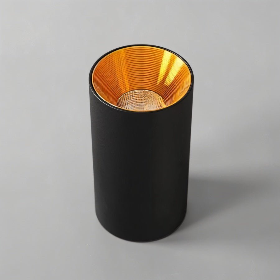 Sleek cylindrical design with a gold reflector for an elegant touch