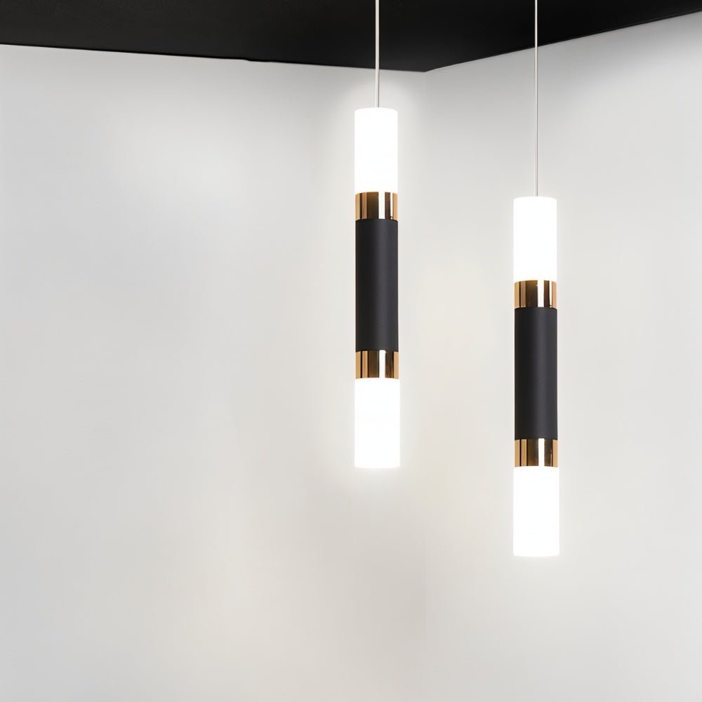 The Duple Pendant Light will add beauty and light to any space. It has a matte black metal frame with gorgeous chrome polished details, as well as a white acrylic diffuser that allows the soft light to stream through on both sides up and down. Duple's sleek, minimalist, and contemporary design makes it look great in every room of your house, making it ideal for kitchens, living rooms, and bedrooms.