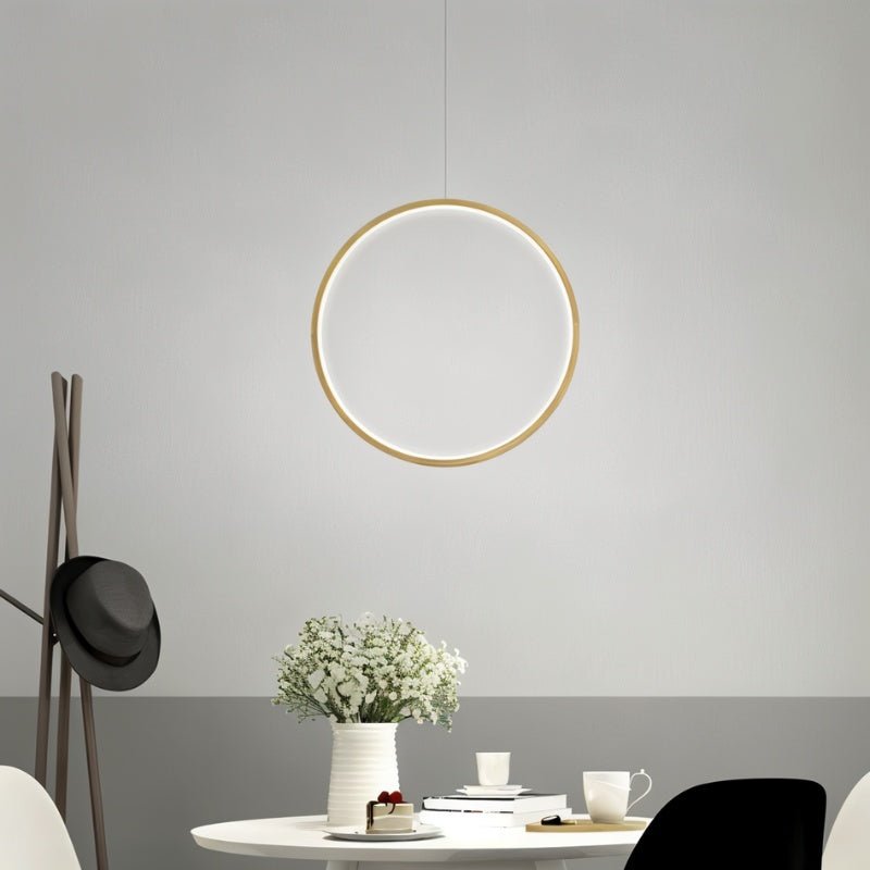 Constructed from durable Aluminum, Fania Pendant Light features a captivating ring silhouette equipped with integrated LEDs, emitting a stunning luminosity that captivates attention. With a variety of finishes to choose from, it effortlessly harmonizes with diverse styles and color schemes. Whether it's creating a welcoming atmosphere in the entryway or illuminating a sophisticated dining experience, Fania is the ideal choice to set the perfect mood.