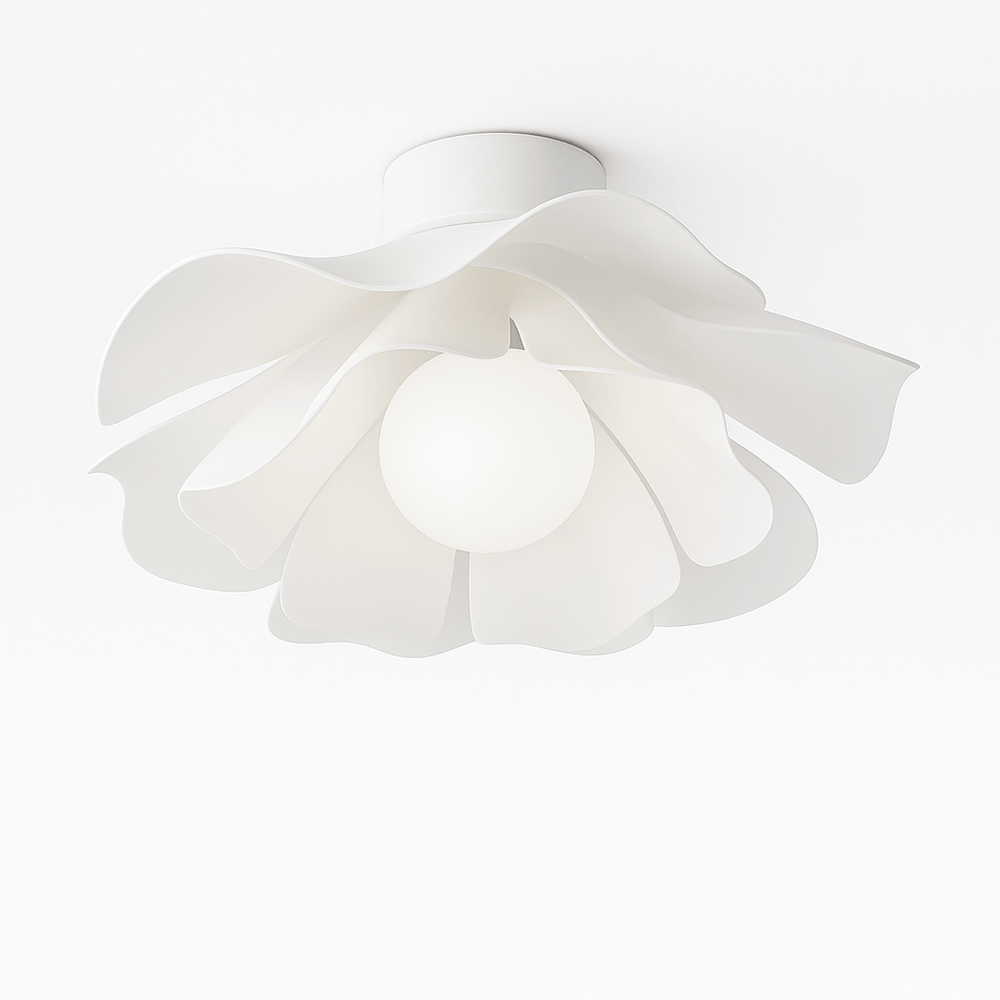 The Fleur Ceiling Light enhances a room's ambiance with its elegant, flower-like design and soft, diffused LED glow, creating a magical and romantic atmosphere suitable for modern or transitional settings.