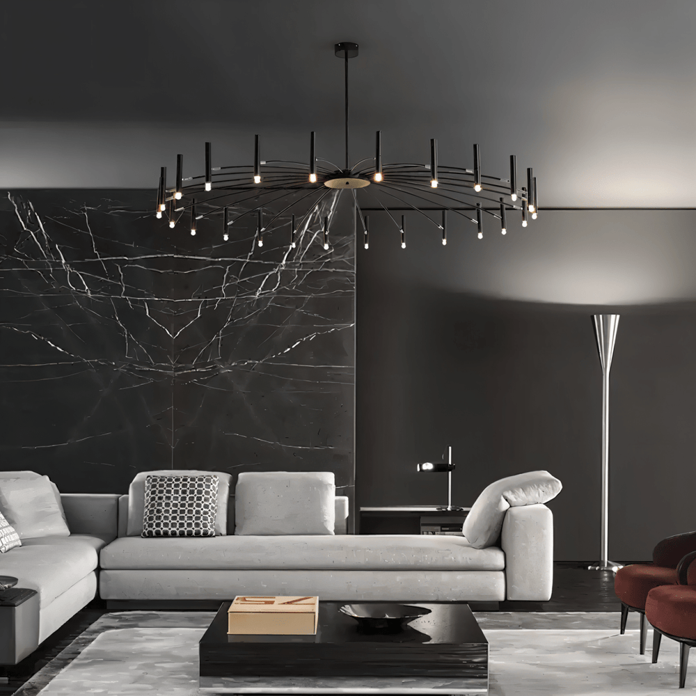 The Funale Chandelier is meticulously constructed using high-quality wrought iron, ensuring it can withstand a lifetime of elements while exuding timeless luxury. The clear glass components contribute to its super modern vibe, creating a glare-free ambient light that enhances any posh room's glamorous feel. This combination of durable wrought iron and elegant glass not only guarantees longevity but also adds a chic, classic touch to your living or dining room.