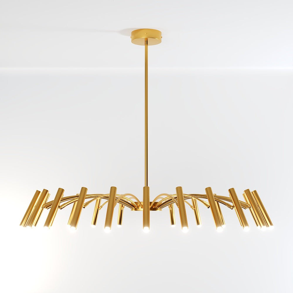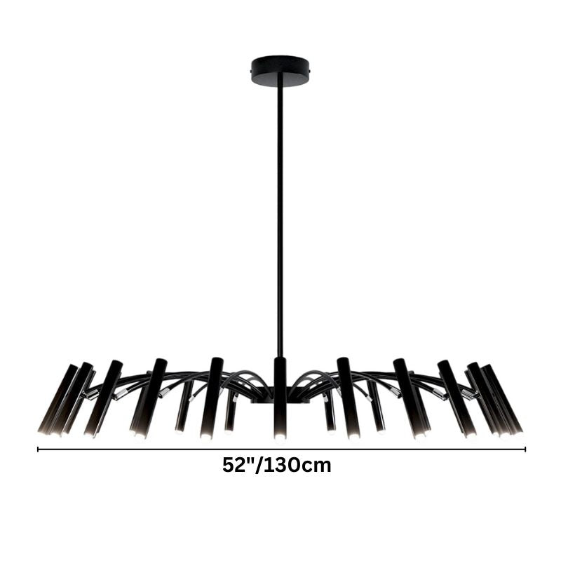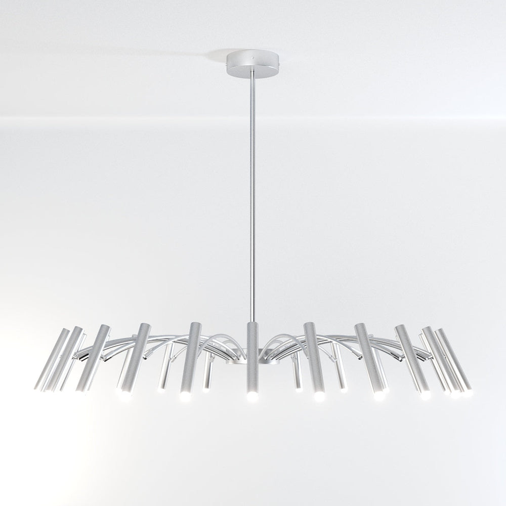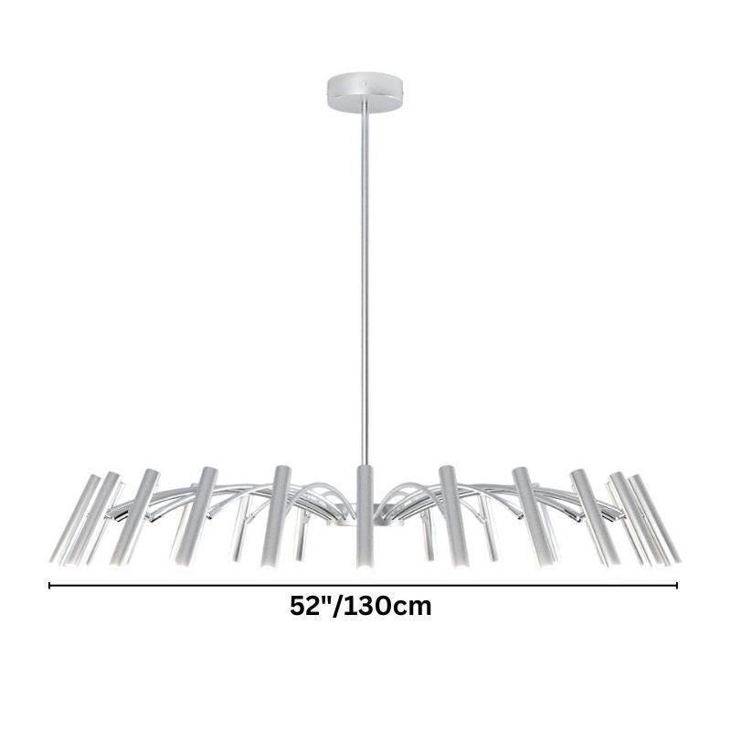 The LEDs in the Funale Chandelier are integrated and designed to last over 100,000 hours, ensuring longevity and durability. They are not replaceable, as the unit is built with LEDs that are meant to last for the entirety of the fixture's lifespan. This design choice enhances the chandelier's reliability and eliminates the need for routine bulb replacement, providing a maintenance-free lighting solution that is both practical and cost-effective for modern living spaces.