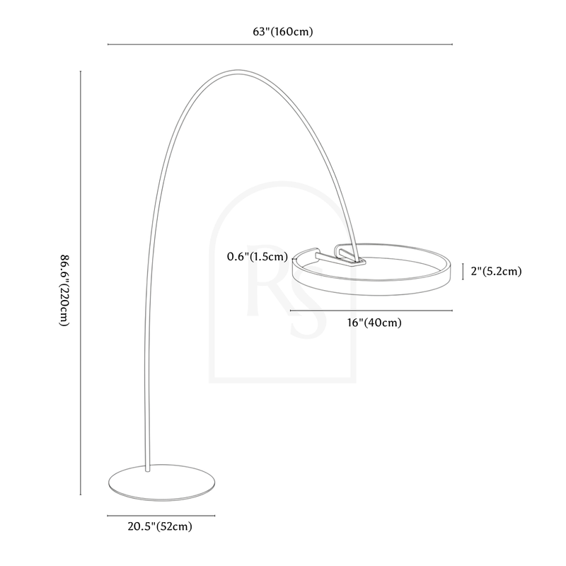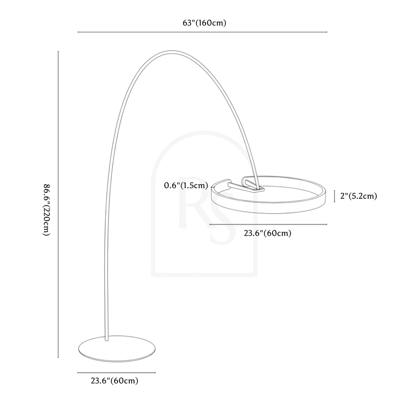 The Halo Floor Lamp features a striking design with a curved arm and two concentric rings, creating a dramatic and modern aesthetic. The light fixture is crafted from a combination of acrylic and aluminum, offering a blend of elegance and durability. It is perfect for illuminating living rooms and lounge areas adding a touch of sophistication to any contemporary space.