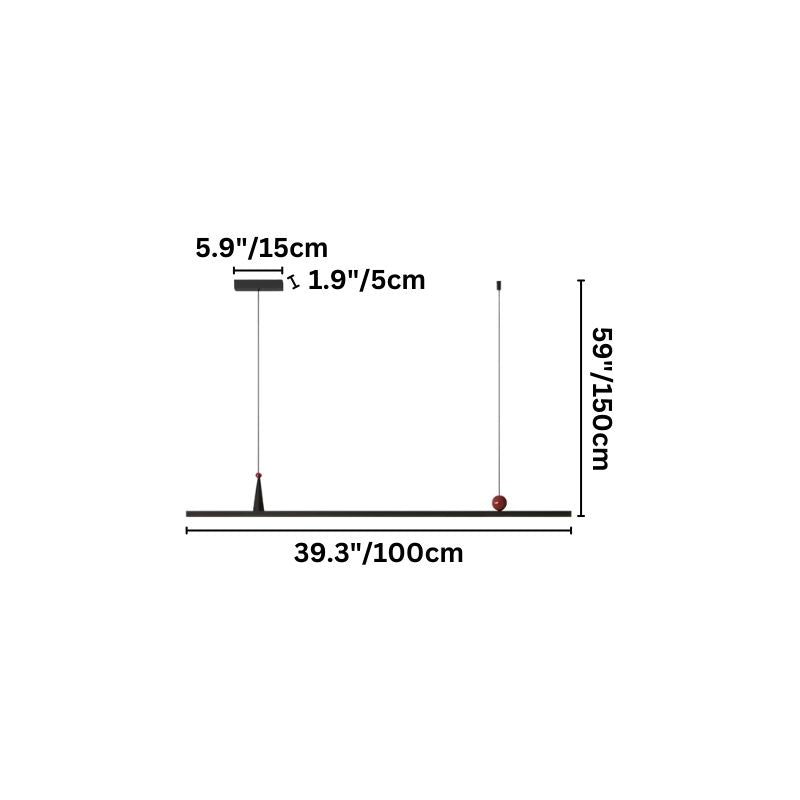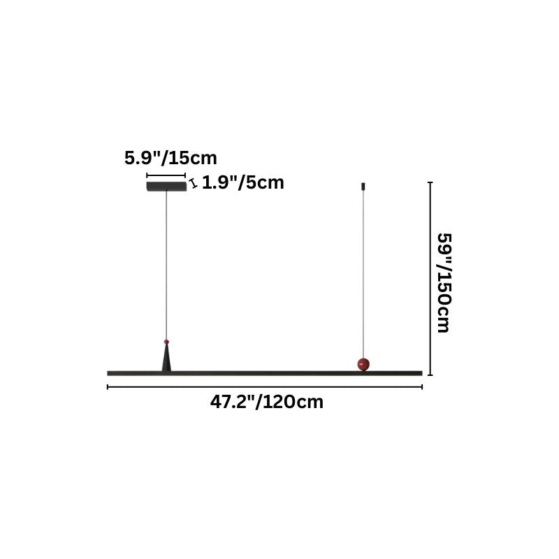 The Halrya Pendant Light is a minimalist aluminum light fixture with a sleek linear design, suspended by two thin cables for a floating effect. Its asymmetrical balance, featuring a cone and a sphere, adds a sculptural element. Ideal for modern interiors, it fits above kitchen islands, dining tables, or reception areas. Available in two sizes, it blends function with artistry, enhancing contemporary spaces.