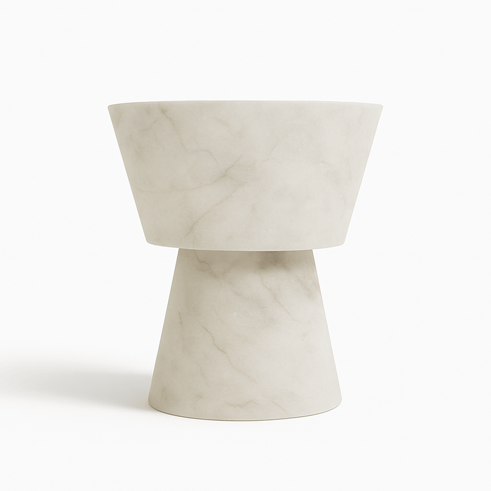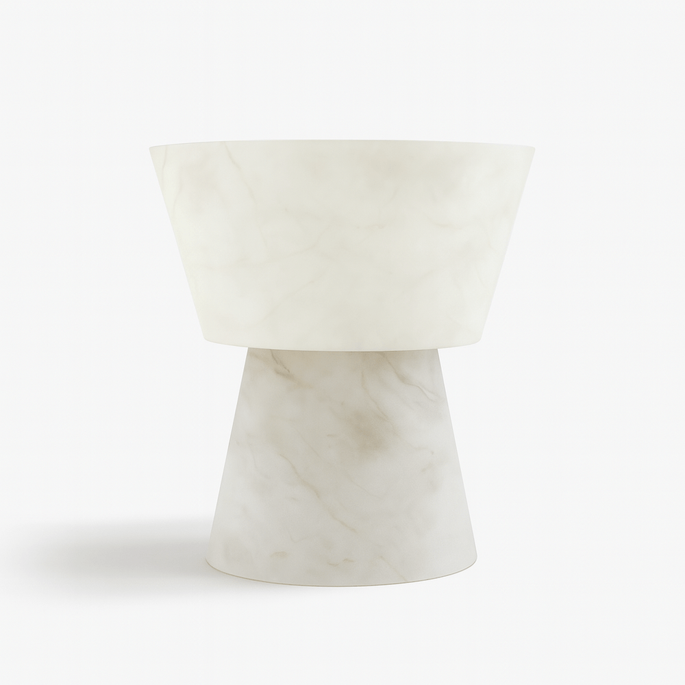 Magnifies the essential beauty of alabaster with an illuminated upper body.
