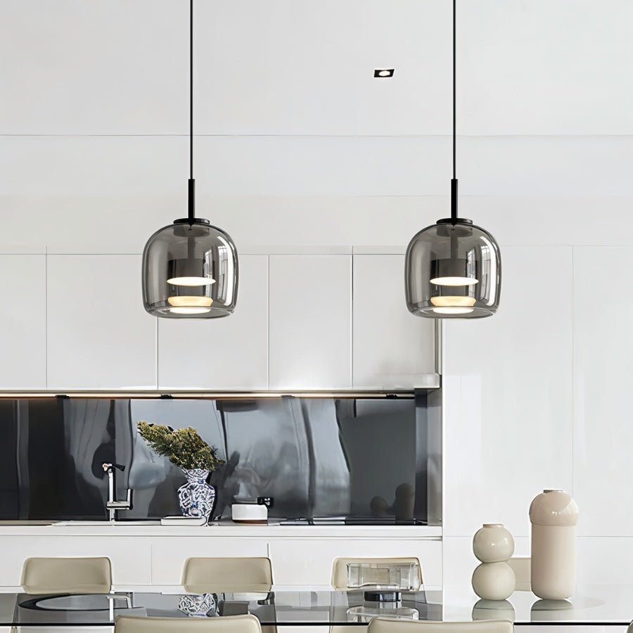 Aluminum and glass pendant offers soft, diffused lighting and modern elegance — perfect for kitchens, dining areas, or contemporary living rooms.