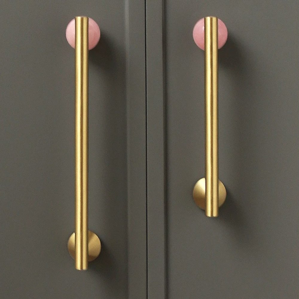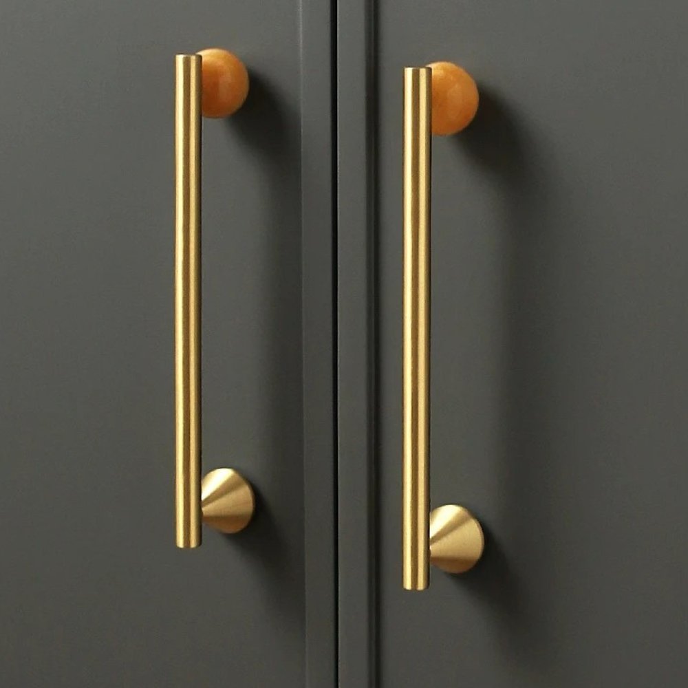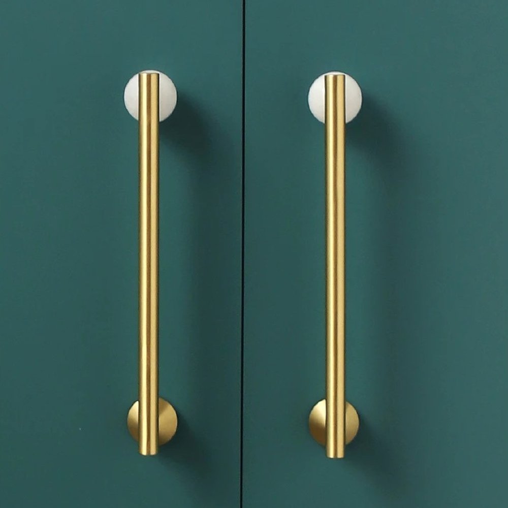 Smooth brass knobs and pull bars enhance your cabinetry with effortless elegance and durability — perfect for kitchens and bathrooms, ensuring a refined touch in high-use areas.