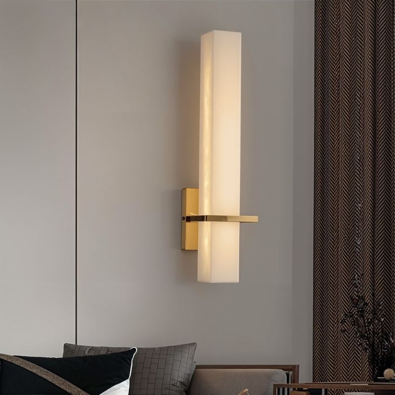 NY2026Alabaster and brass wall fixture delivers soft, diffused light while saving floor space — perfect for creating a warm, inviting atmosphere in any modern interior.