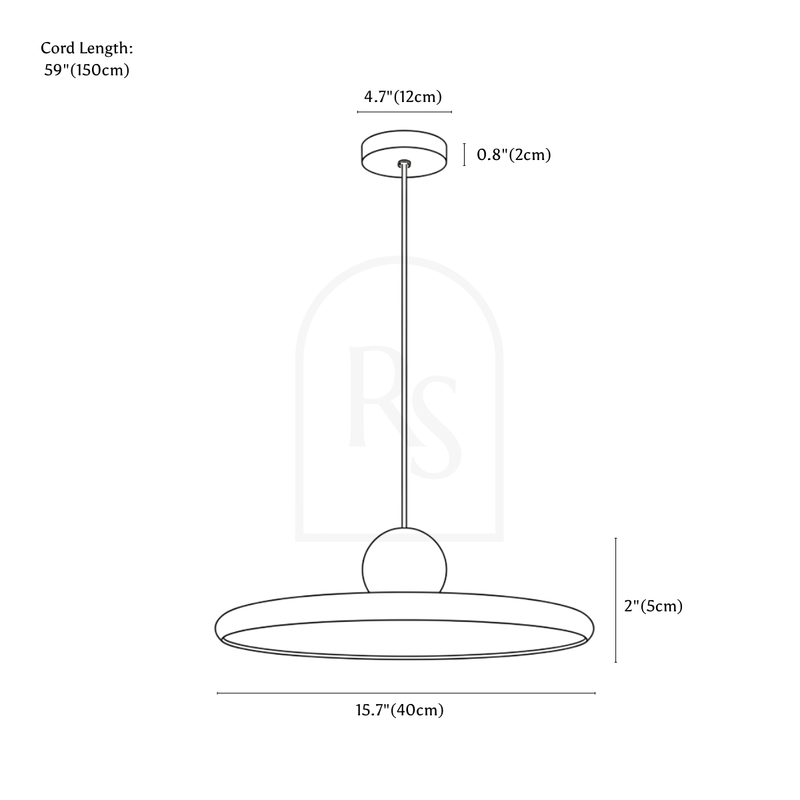 - Striking disc-shaped shade with a spherical accent for contemporary appeal.