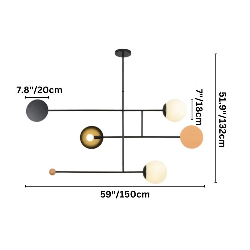 The Niamh Chandelier is crafted from a combination of wood, steel, and luminous white glass orbs, creating a beautifully balanced and sculptural design that adds a modern touch to any room. For installation, please ensure it is done under the guidance of a professional installer.