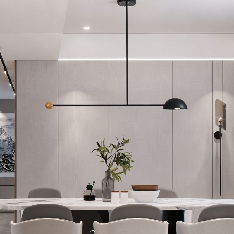 Black powder-coated finish offers modern elegance and energy-efficient LED lighting — perfect for living rooms, dining areas, and versatile spaces.