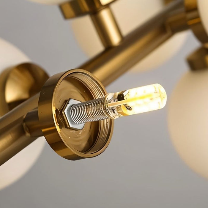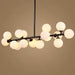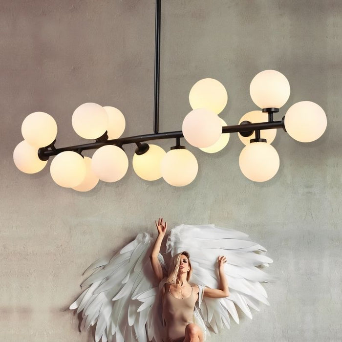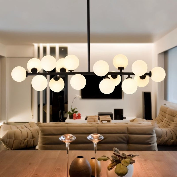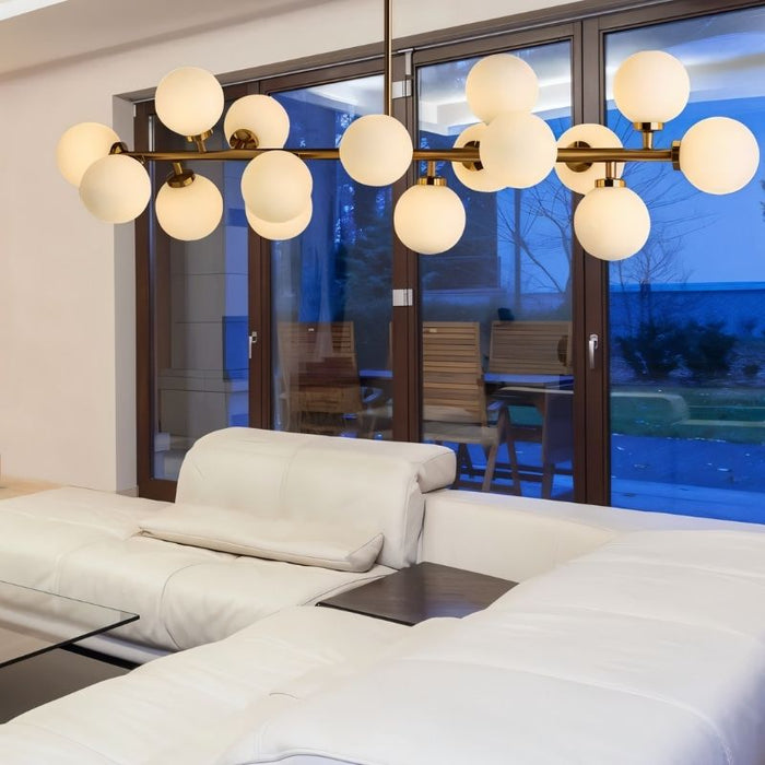 The Novira Chandelier is a statement light fixture featuring a bold metal frame with frosted glass globes, creating a sculptural balance of form and function. Available in 16 heads and two finishes, it complements modern, industrial, and mid-century interiors. Ideal for dining areas, living rooms, and loft spaces, this chandelier distributes ambient light evenly. Its geometric structure and modular design make it a striking focal point. Crafted from durable metal and glass, it ensures longevity and refined aesthetics.