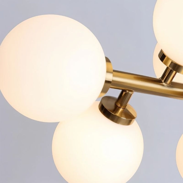 Balanced structure with frosted glass globes for a soft, diffused glow.