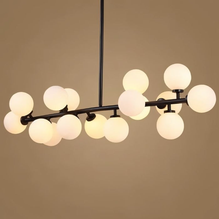 Sixteen frosted globes cast a warm, evenly diffused illumination.