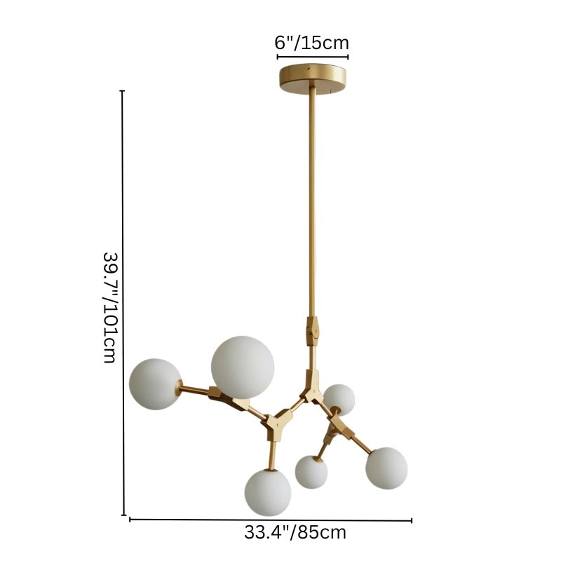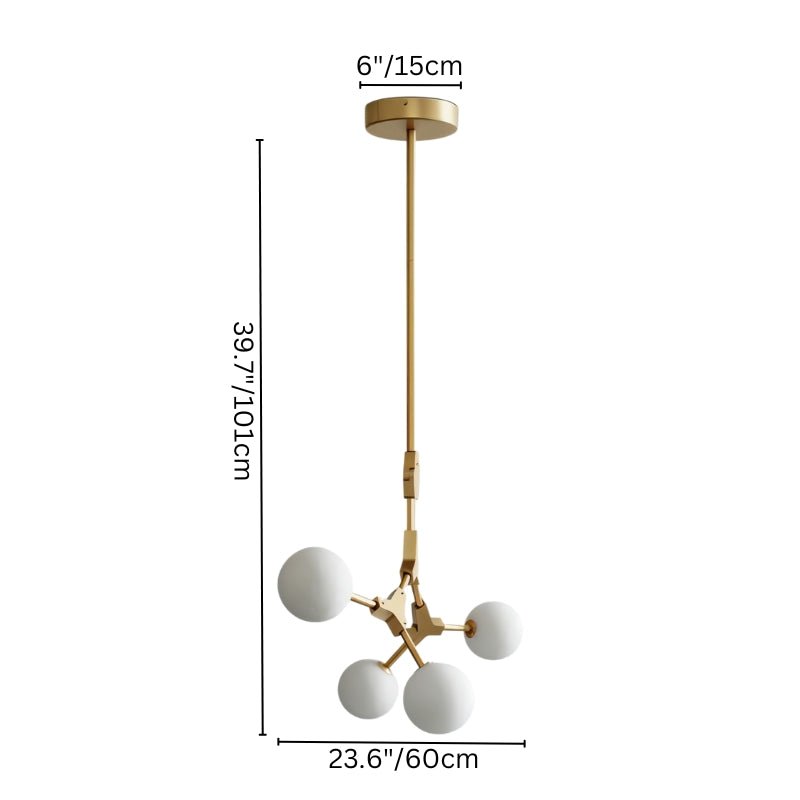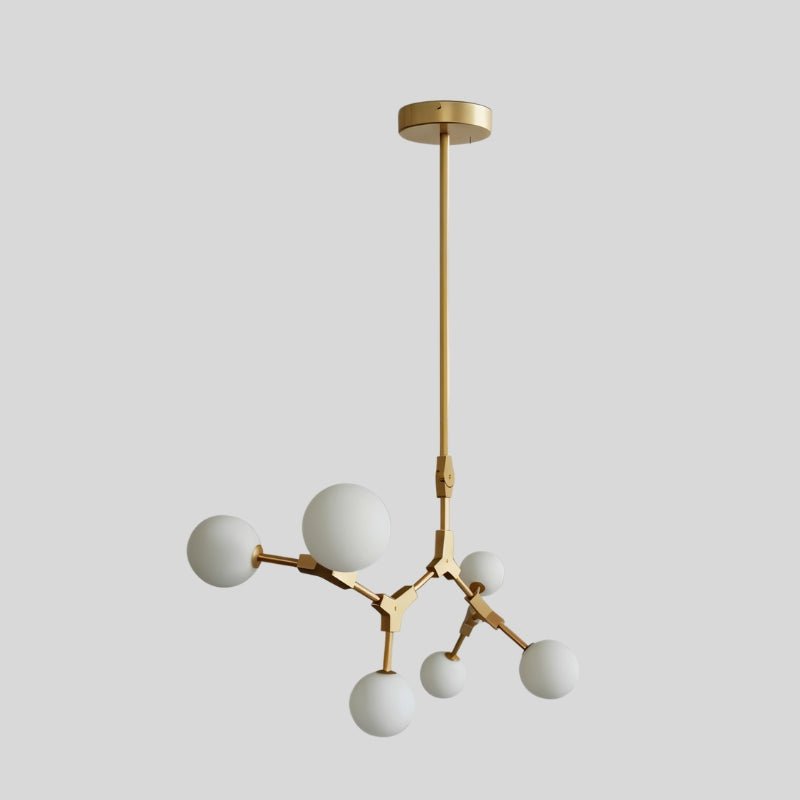 The Noxira Chandelier is a modern light fixture made from durable iron and frosted glass, featuring adjustable arms with spherical glass shades for a bold geometric look. Its sculptural design provides balanced illumination, making it ideal for kitchens, dining rooms, and open-concept spaces. This versatile light fixture enhances both residential and commercial interiors, blending functionality with contemporary elegance.