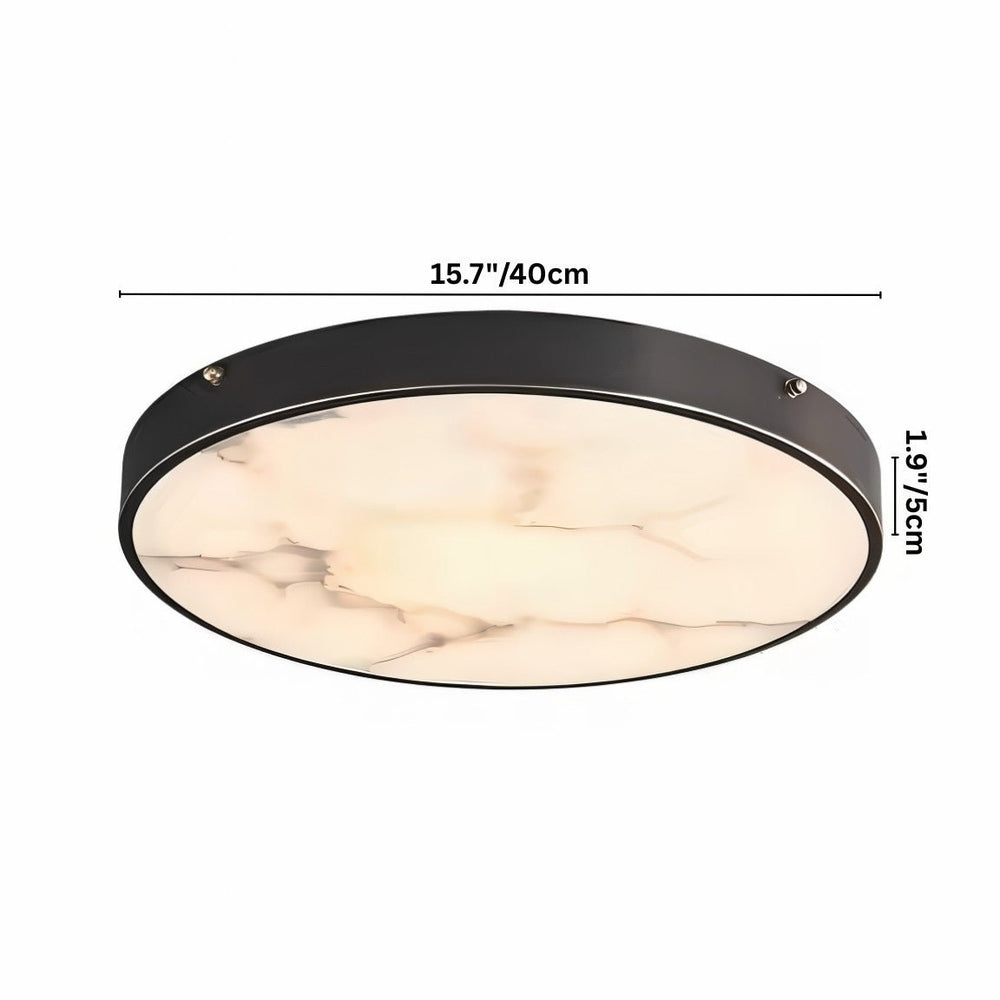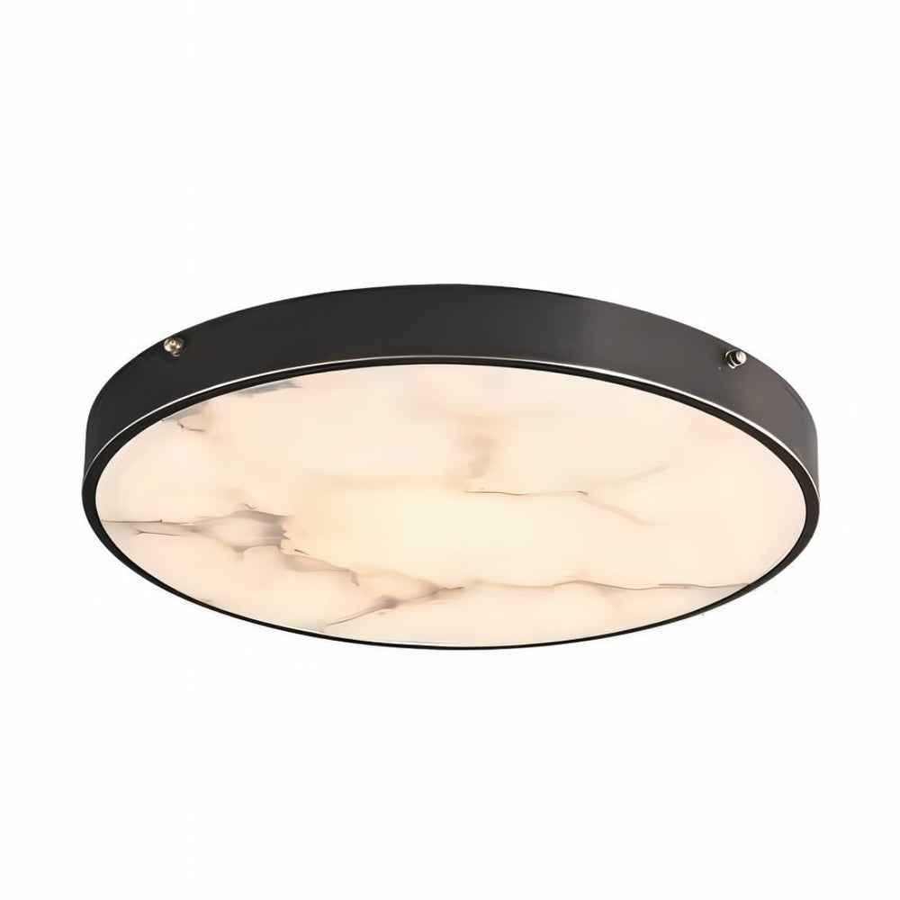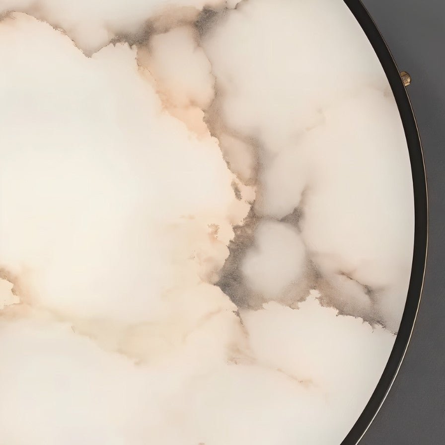 The Nuvia ceiling light fixture showcases a round, flush-mount design crafted from copper, an iron plate, and a marble diffuser. Its dark metal rim with brass screw accents contrasts beautifully with the marble’s natural veining. The smooth silhouette ensures soft, even illumination, enhancing modern and minimalist interiors. Ideal for living rooms, bedrooms, hallways, and dining areas, this ceiling light fixture blends functionality with refined elegance.