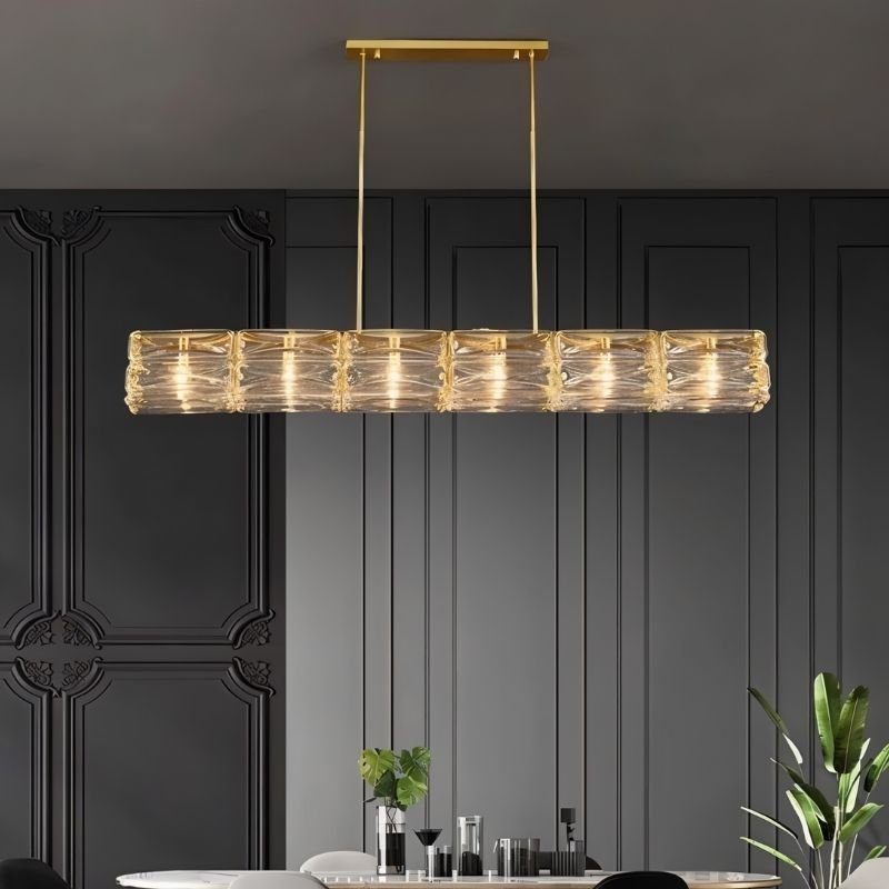 The Nyvora Linear Chandelier is a modern light fixture crafted from premium copper and textured glass, offering a sleek yet luxurious aesthetic. Its elongated rectangular design provides balanced illumination, making it ideal for dining areas, kitchen islands, or contemporary living spaces. The warm gold finish enhances its sophistication, while the glass diffusers create a soft, ambient glow. Available in three sizes, this statement piece seamlessly integrates into high-end interiors with a refined, minimalist appeal.