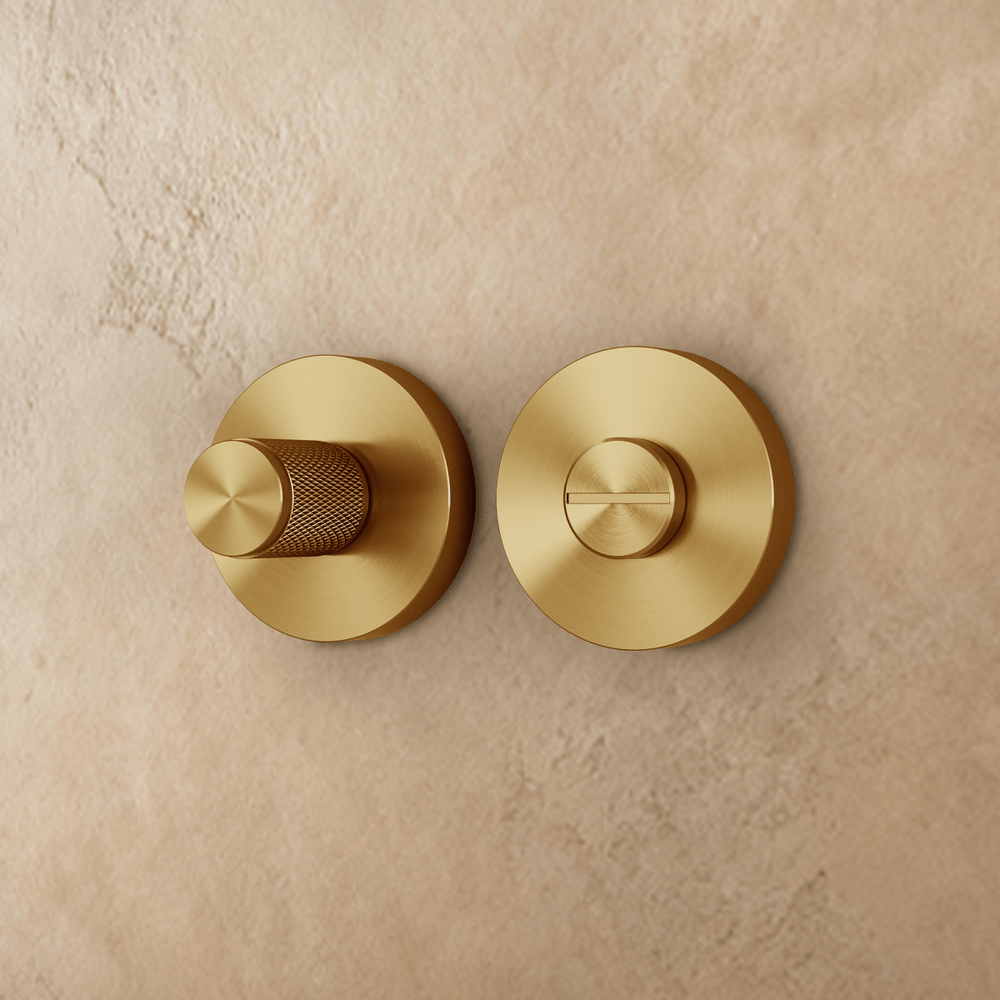 The Orvo Handle and Lock is a precision-crafted brass hardware set featuring a knurled cylindrical handle and smooth circular base, designed for superior grip and a minimalist, architectural look. Perfect for interior doors in modern homes, offices, or boutique spaces, Orvo combines security, style, and functionality for bedrooms, bathrooms, and passageways.