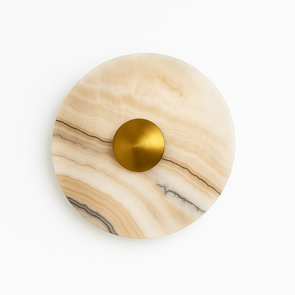 The Orvora Wall Lamp is a sculptural light fixture crafted from natural marble, showcasing organic veining patterns that make each piece unique. Its circular design features a central metallic accent in silver or gold, adding a refined contrast to the stone. Mounted on walls, it serves as both a functional light source and a statement piece for hallways, bedrooms, and living spaces. The smooth marble surface enhances ambient lighting, creating a warm, diffused glow. Ideal for modern and minimalist interiors, this wall lamp blends timeless materiality with contemporary design.