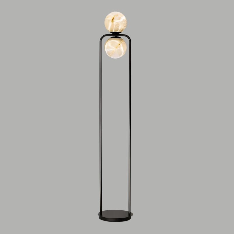 The Ostra Floor Lamp is a contemporary light fixture featuring a minimalist aluminum frame with smooth curves, paired with an alabaster globe that emits a soft, diffused glow. Its tall, slender design is ideal for living rooms, bedrooms, or offices, adding a modern touch while providing ambient lighting. The stable base and lightweight aluminum construction ensure durability, making it a perfect fit for sophisticated interiors.