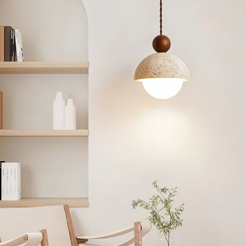 The Palermo Pendant Light is a minimalist light fixture crafted from yellow travertine, complemented by a choice of log or walnut wood finish. Its dome-shaped shade and smooth wooden accent bring an earthy, organic aesthetic to contemporary interiors. Perfect for living rooms, dining areas, or entryways, this pendant light blends natural textures with clean lines, adding warmth and sophistication to any space.