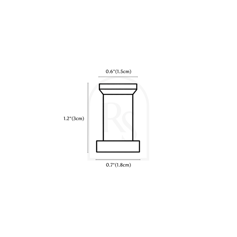Dimensions: A: D0.5"(1.4cm) x H1.8"(4.6cm) B: D0.8"(2.2cm) x H1.1"(3cm) C: D0.7"(1.8cm) x H1.1"(3cm) D: 0.4"(1.2cm) x H1.4"(3.8cm)